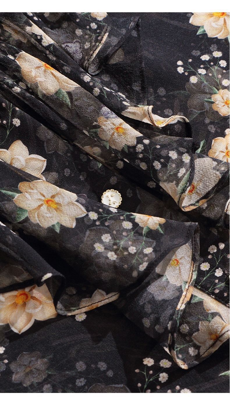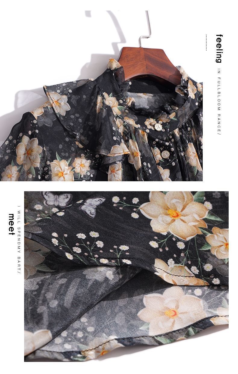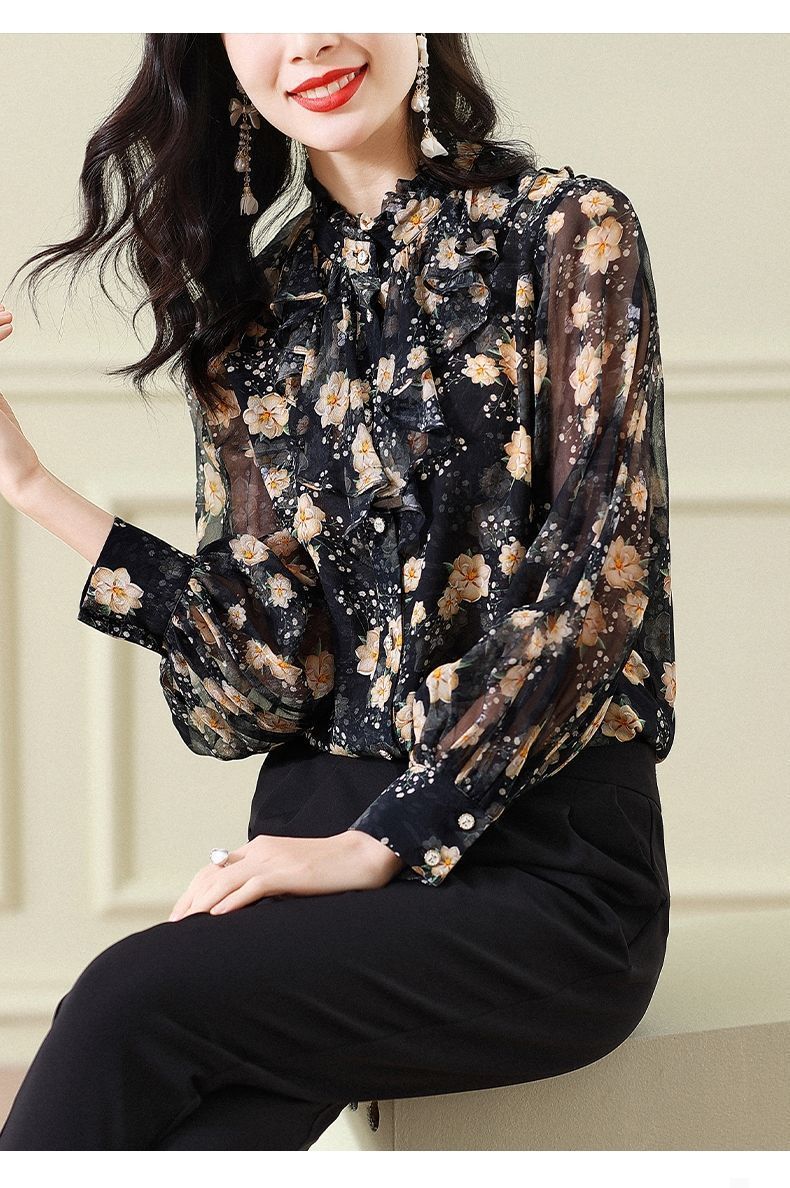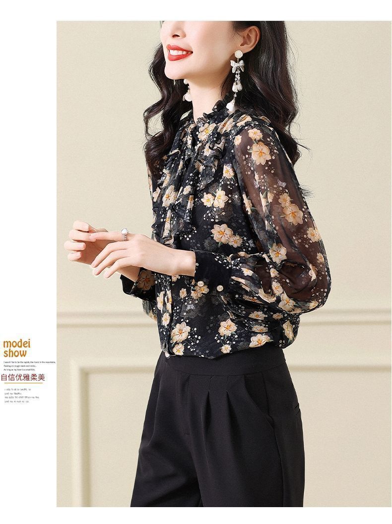 여성용 쉬폰 긴팔 셔츠 2025 여름 신작 프렌치 시크 연령 감소 러플 탑 한국 꽃무늬 셔츠