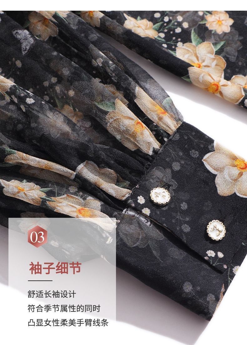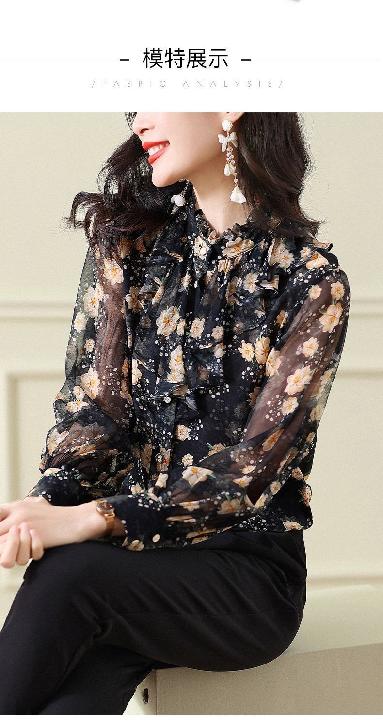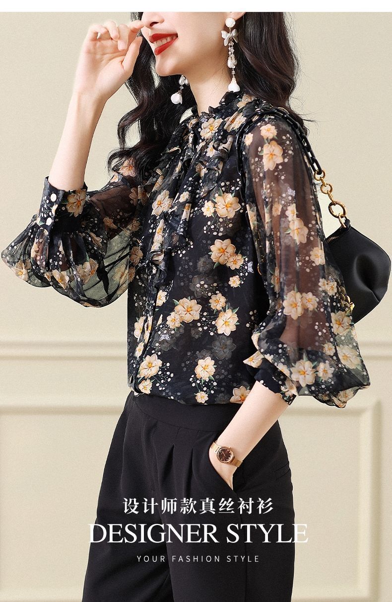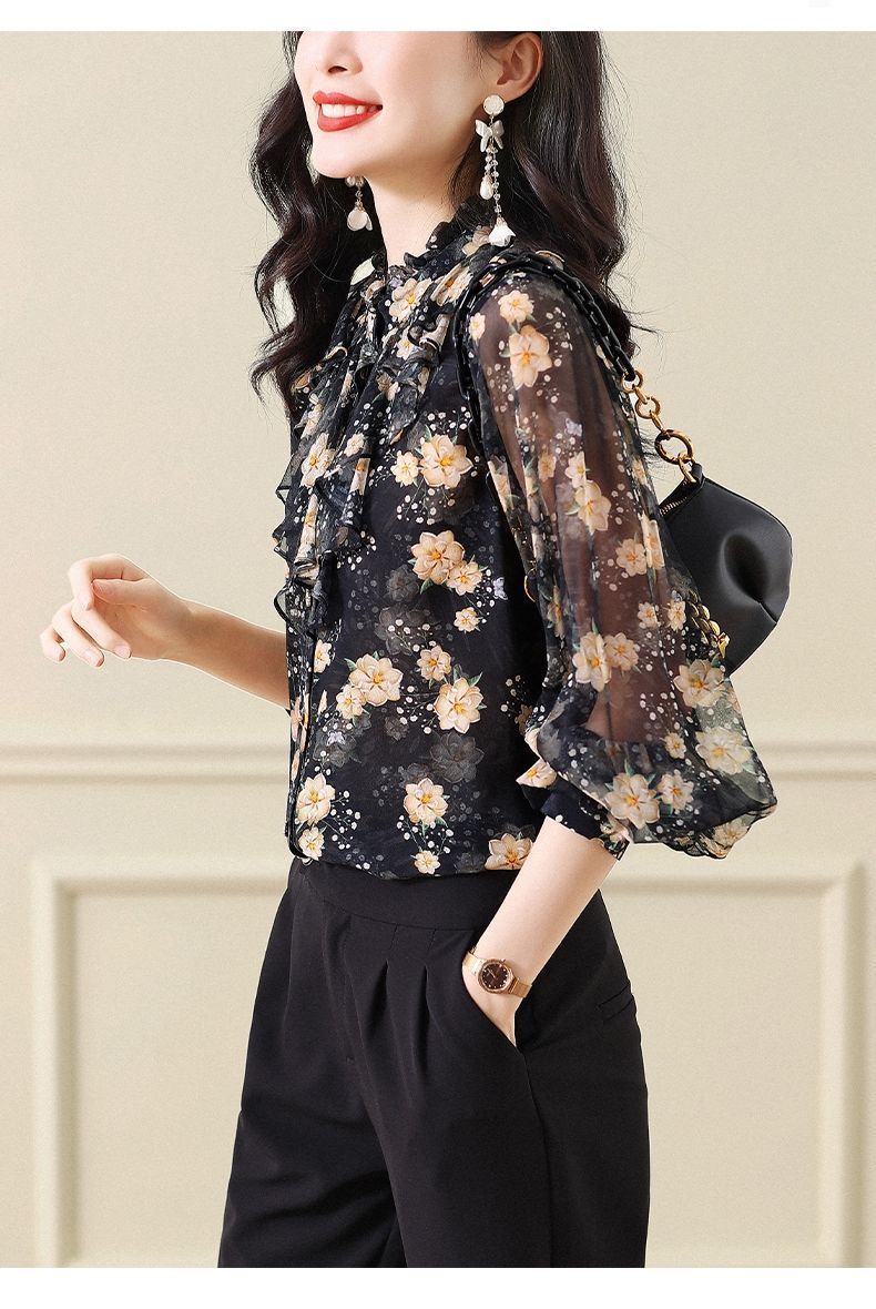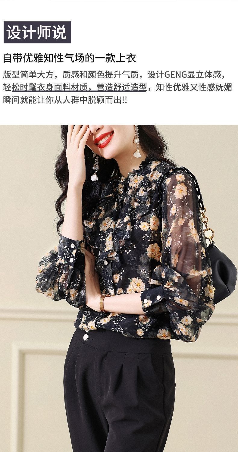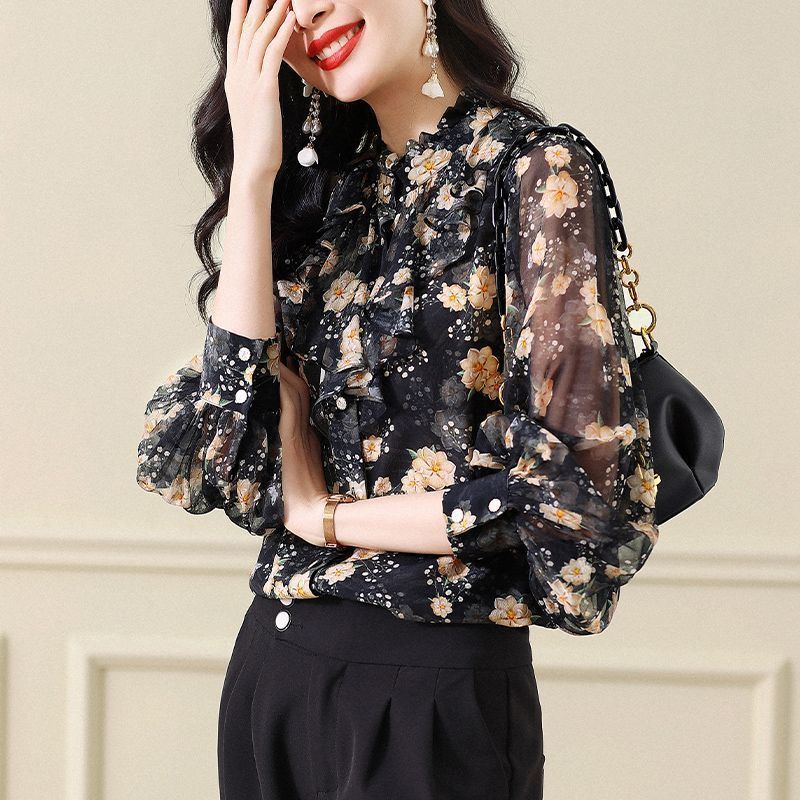 여성용 쉬폰 긴팔 셔츠 2025 여름 신작 프렌치 시크 연령 감소 러플 탑 한국 꽃무늬 셔츠스토어 가기