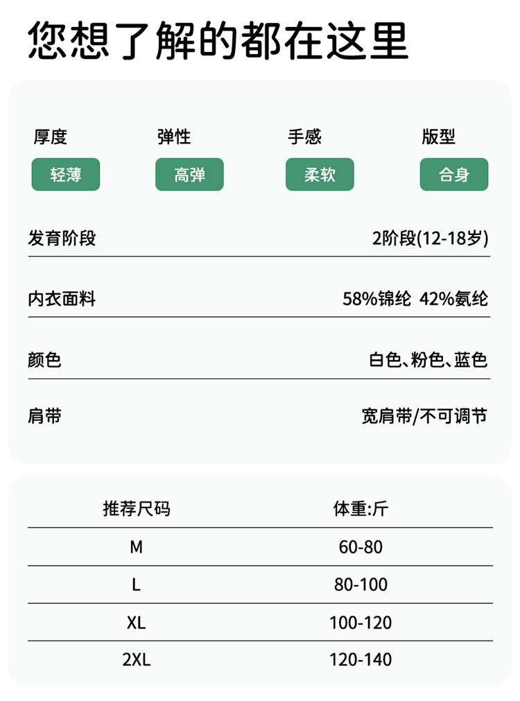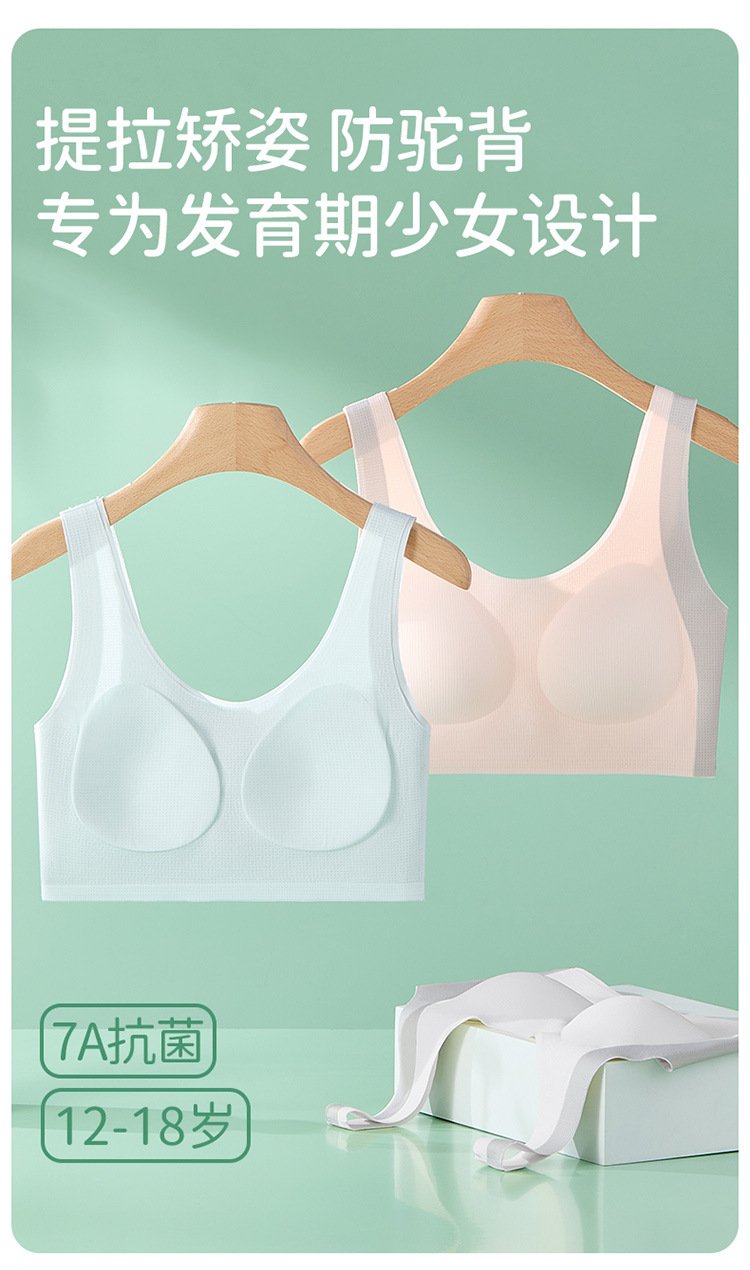 발달기 통기성, 땀 흡수성, 리프팅 및 자세 교정 어린이 조끼, 흔적 없음, 편안함, 피부 친화적이고 부드러운 소녀 속옷스토어 가기