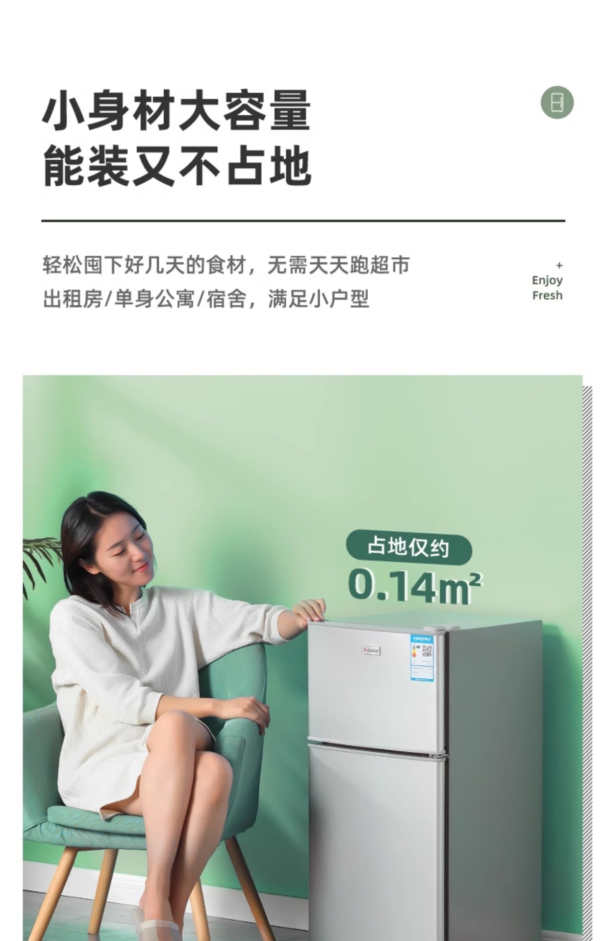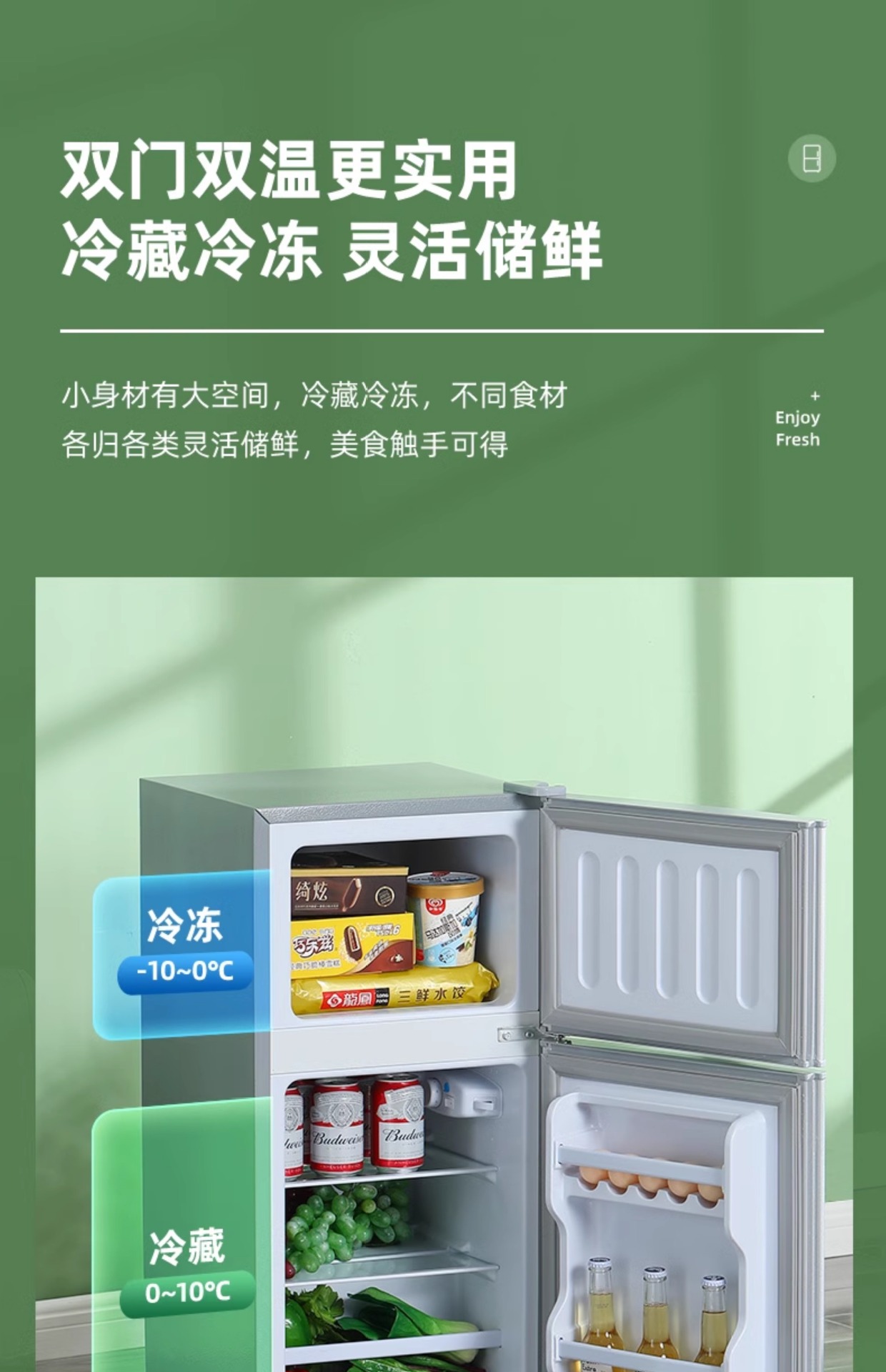 치고 미니 에너지 절약 미니 냉장고 가정용 소형 사무실 전기 기숙사 다른 렌탈 더블 도어 냉장고