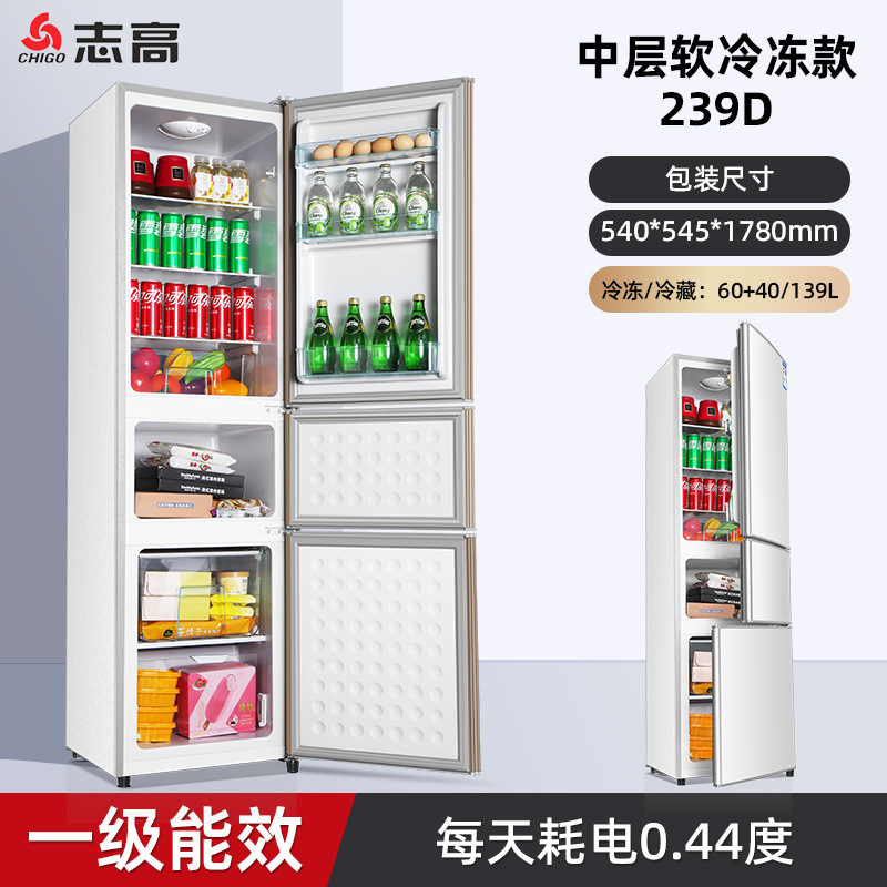 • 실버 206L 1단 에너지 절약/동관 무소음/3도어 3온도