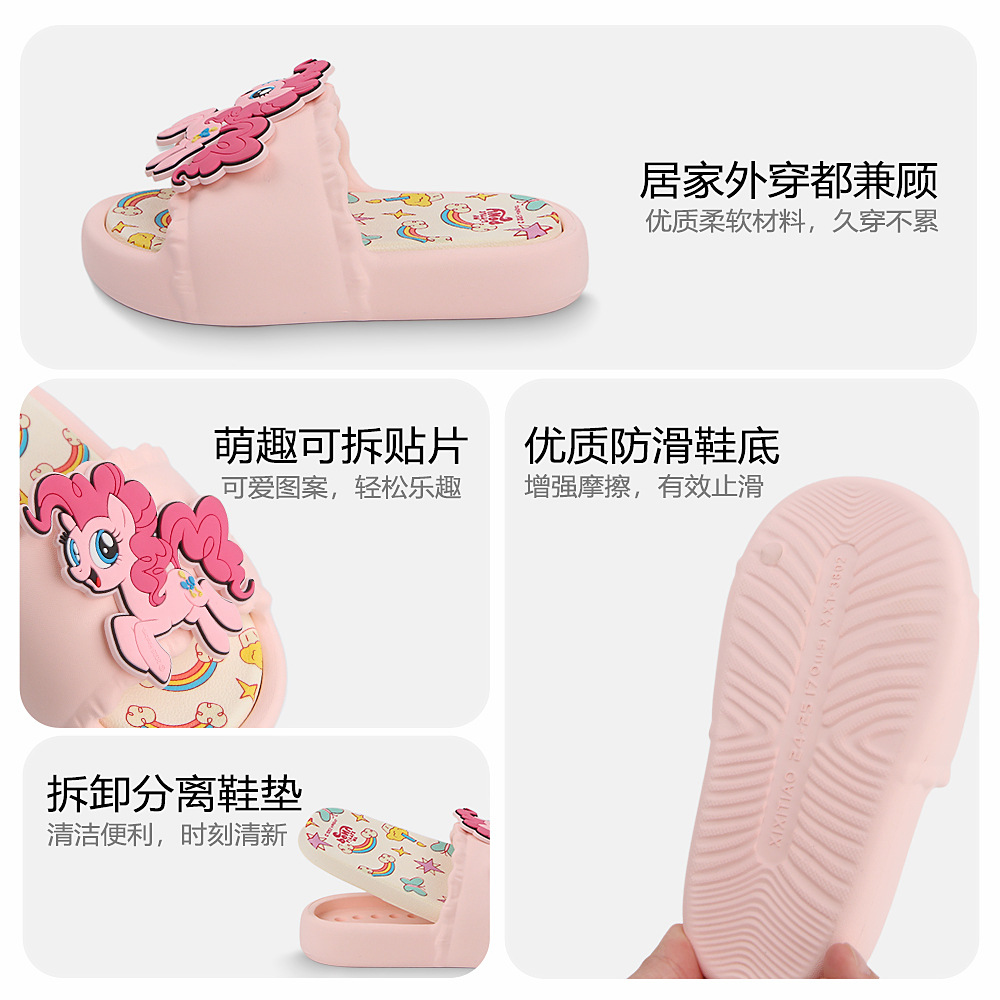 패셔너블한 부모-자식 여름 슬리퍼, 귀여운 퍼플 조이 피치 소녀 마이 리틀 포니 공동 브랜드 어린이 슬리퍼
