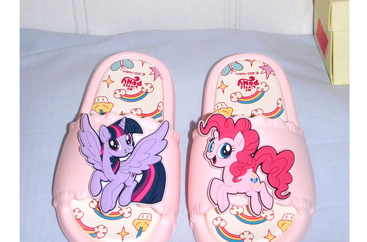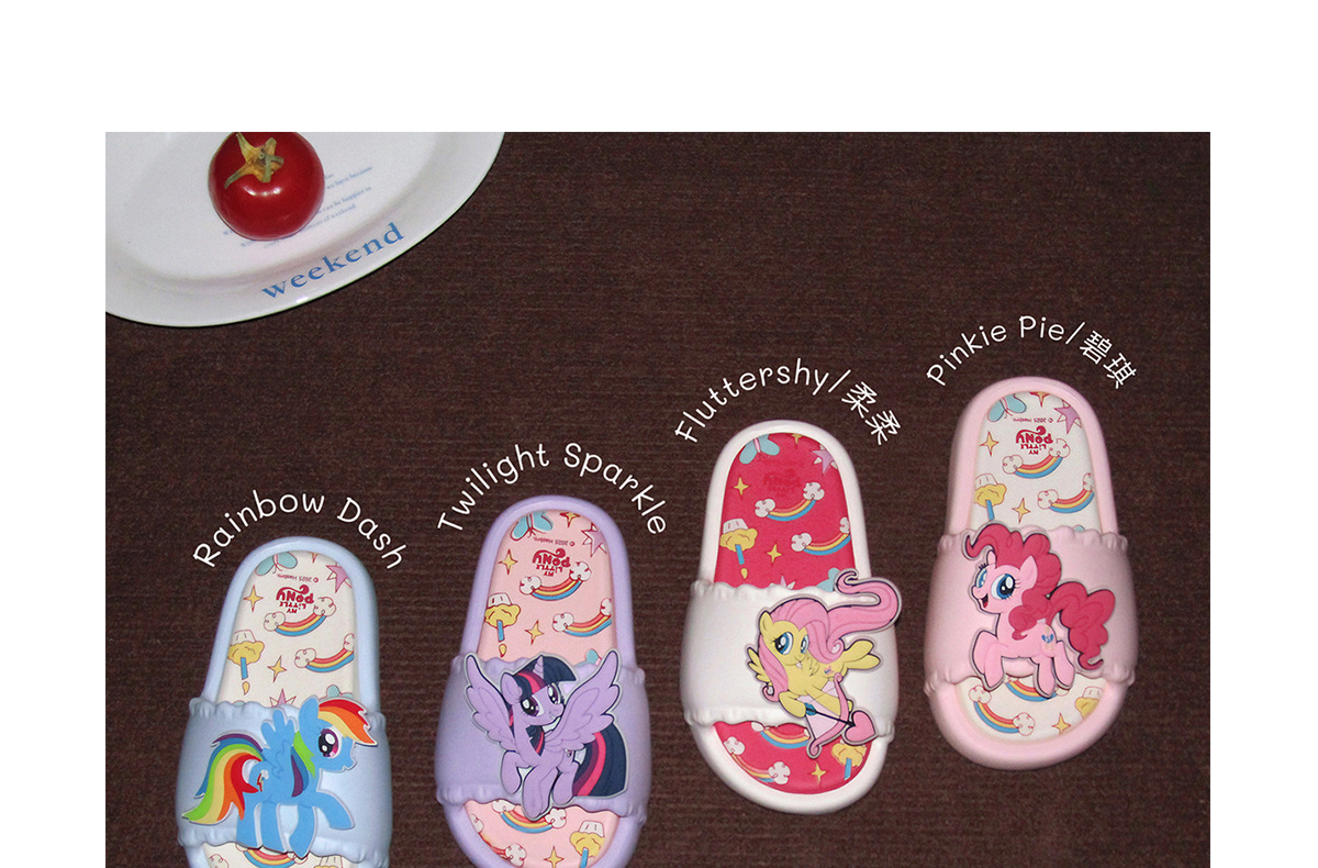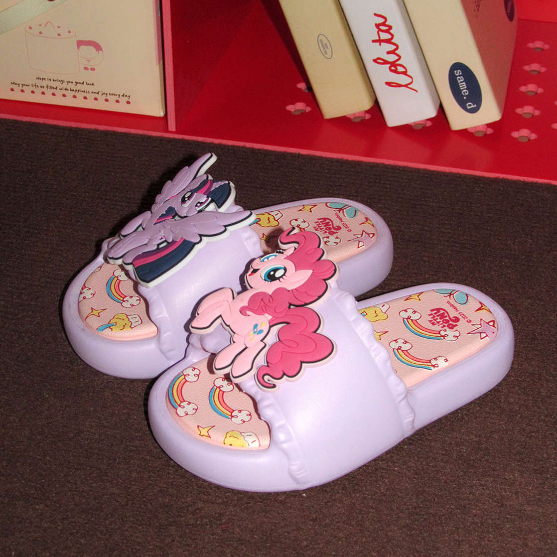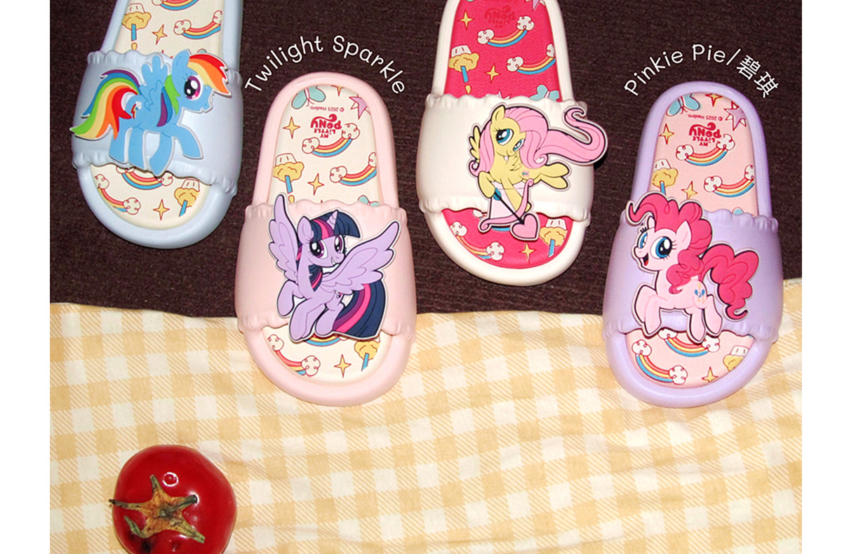 패셔너블한 부모-자식 여름 슬리퍼, 귀여운 퍼플 조이 피치 소녀 마이 리틀 포니 공동 브랜드 어린이 슬리퍼스토어 가기