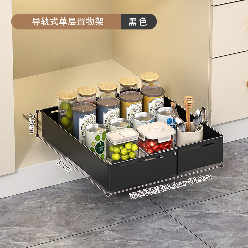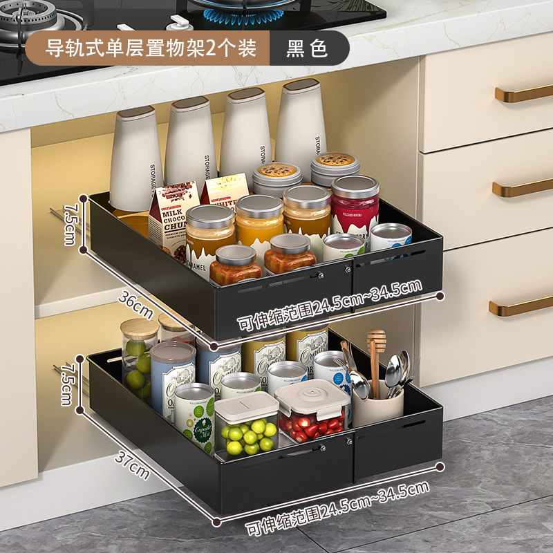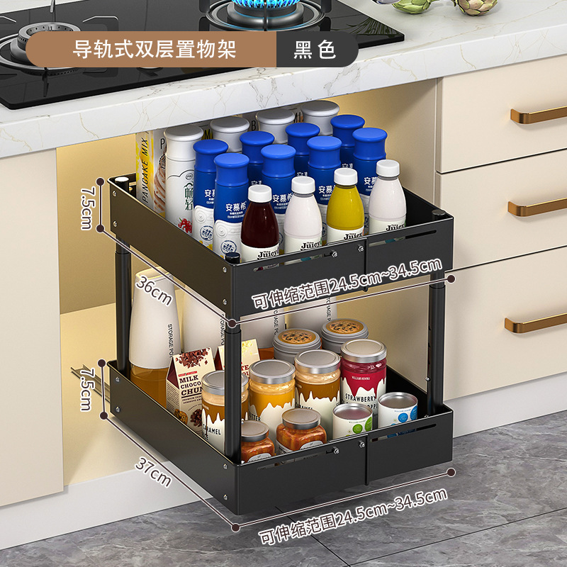 • 더블 레이어 - 가이드 레일 텔레스코픽 싱크 랙 - 패널 스타일 - 검정색