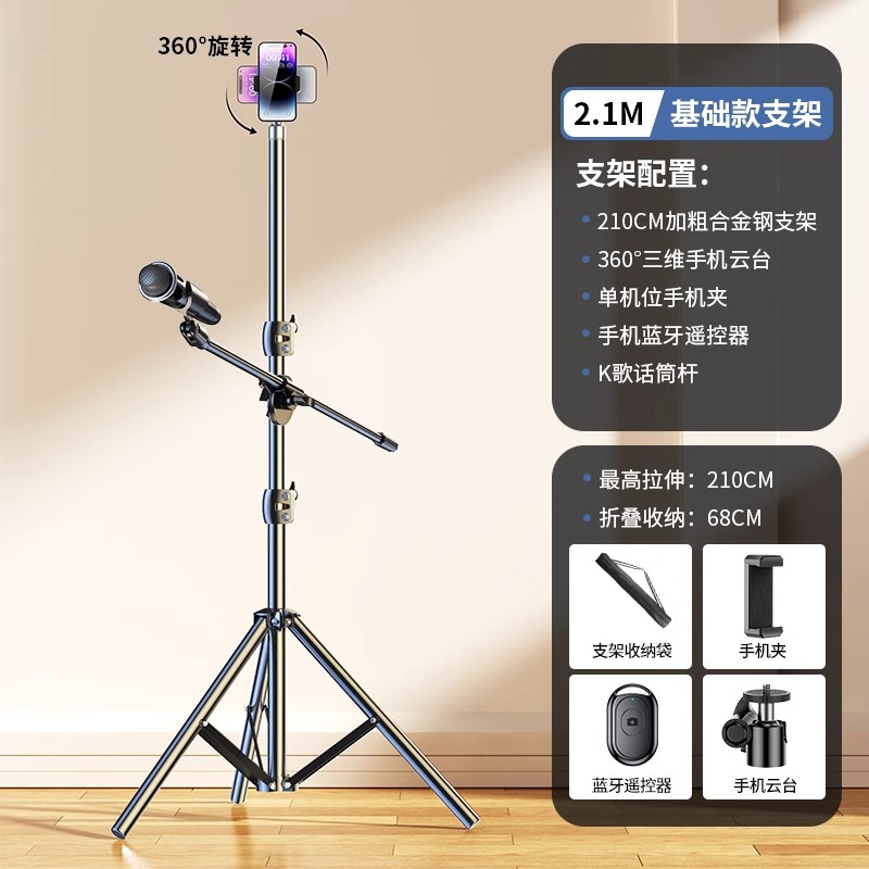 • 2.1m [업그레이드된 합금 스탠드] 마이크 스탠드 + 싱글 카메라 + 셀카 + 보관 가방.