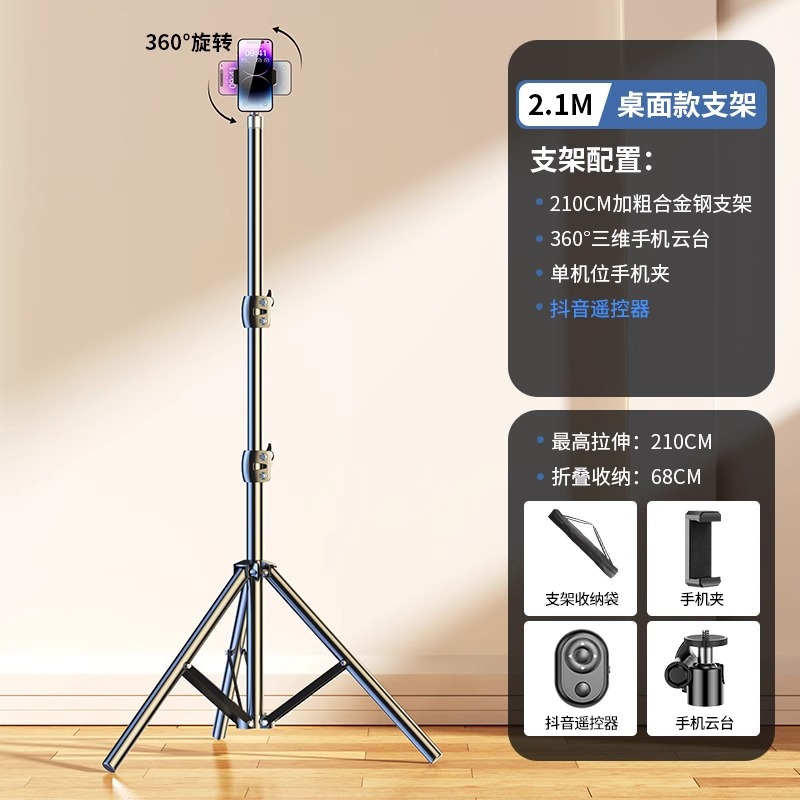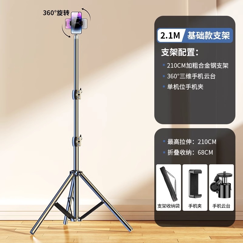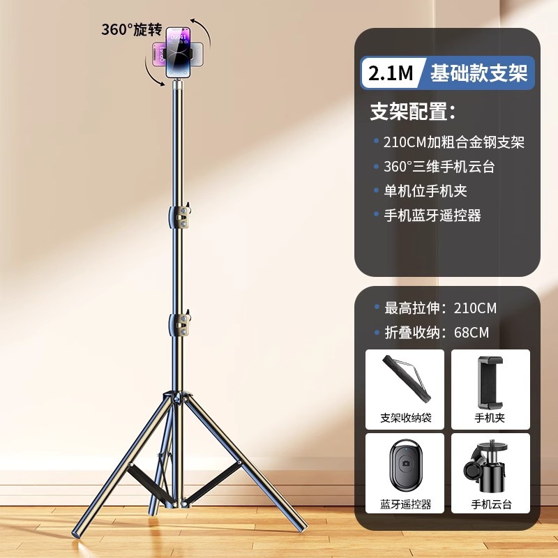 • 2.1m [업그레이드된 합금 브래킷] + [Douyin 리모콘] 단일 카메라 + 보관 가방.