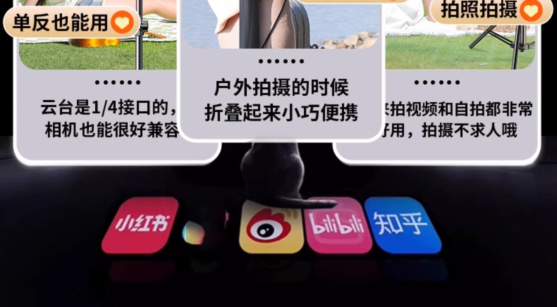 • 55cm [업그레이드된 합금 스탠드] 셀카 + 싱글 카메라 + 수납가방.