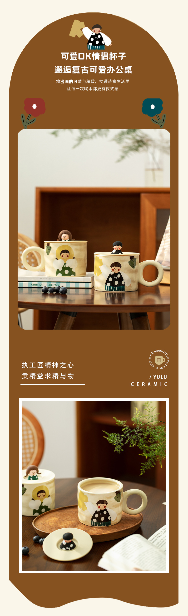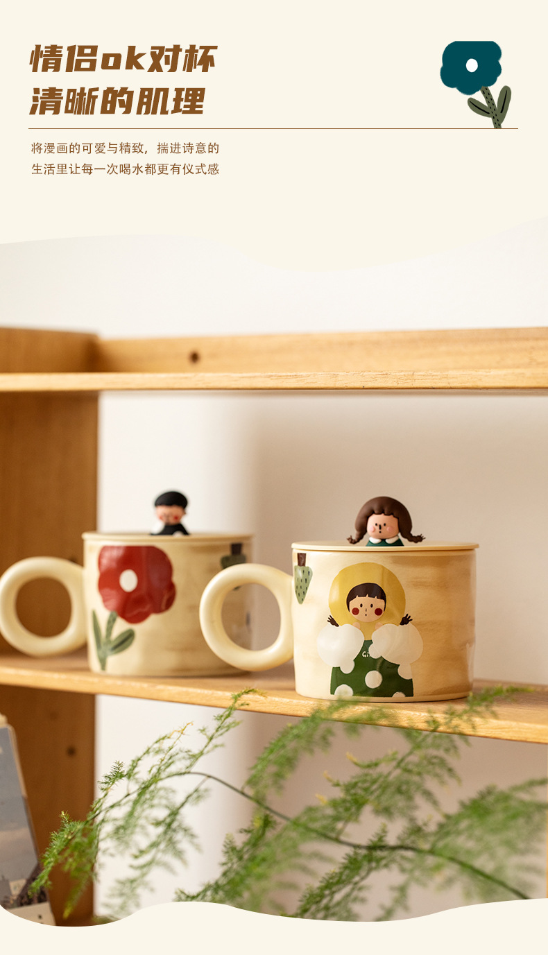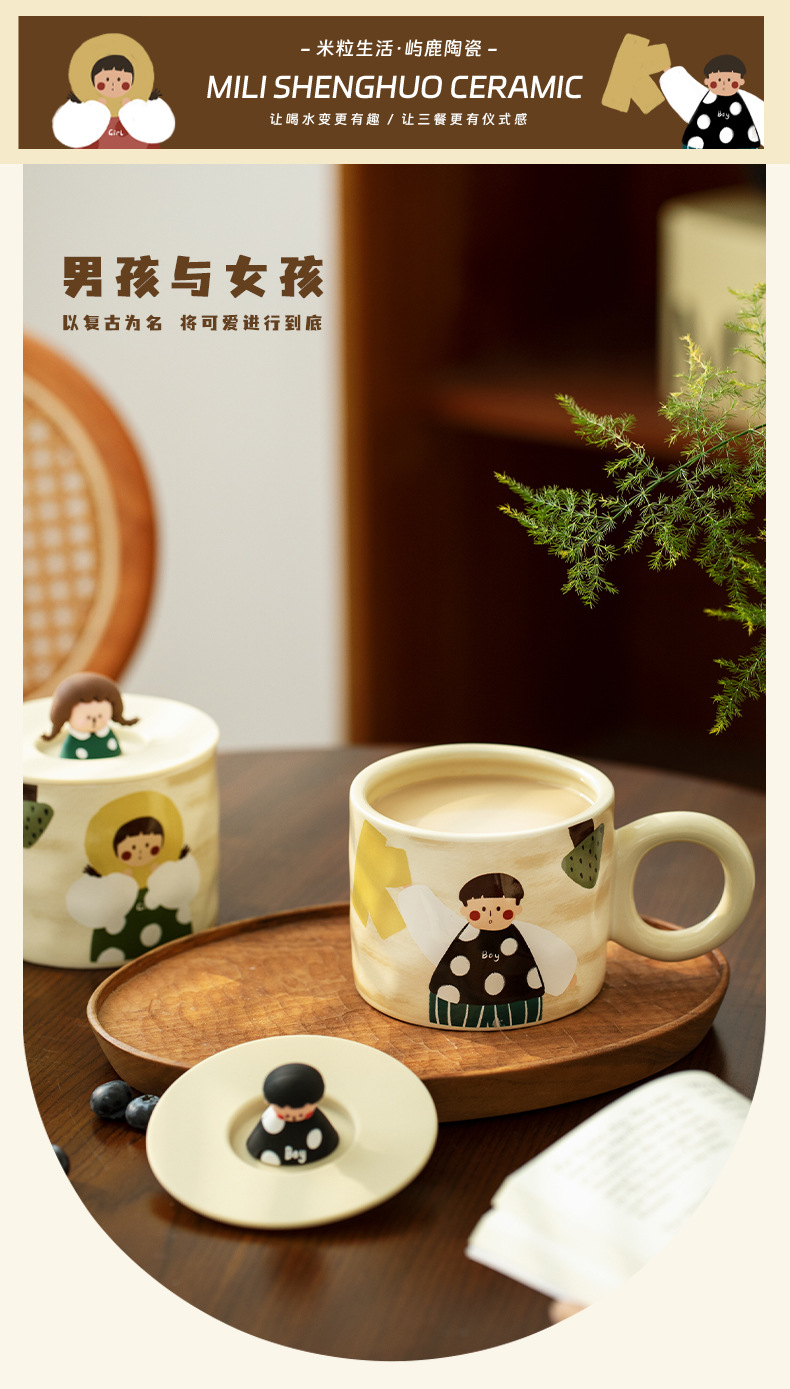 머그잔 소년 소녀 커플 워터 컵 뚜껑이있는 세라믹 컵 한 쌍 커플 아침 식사 컵 커피 컵 도매