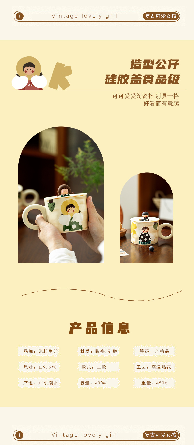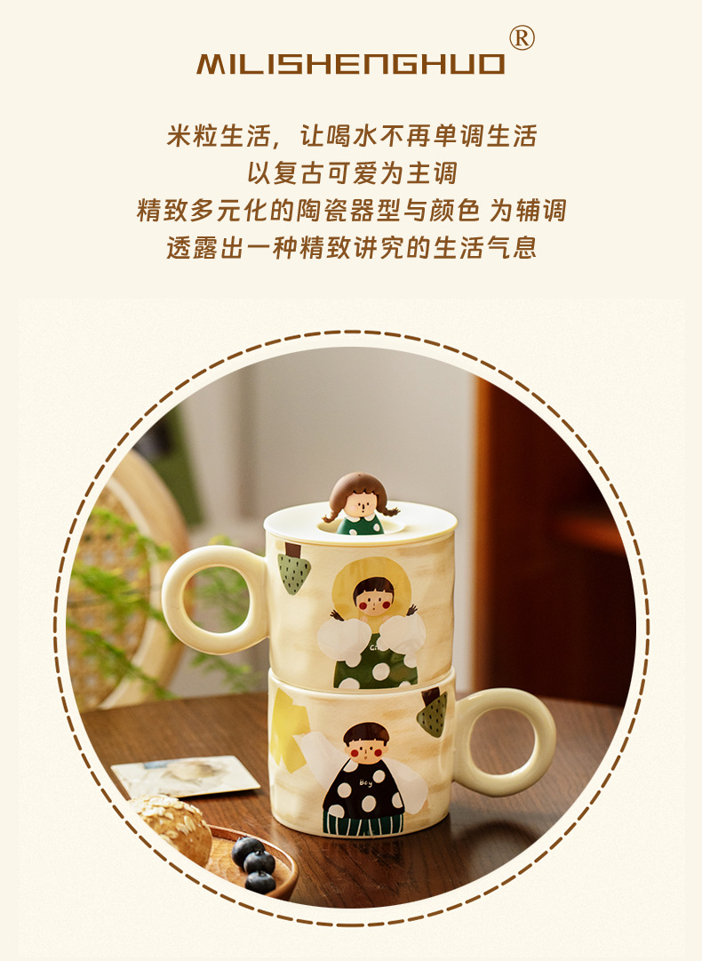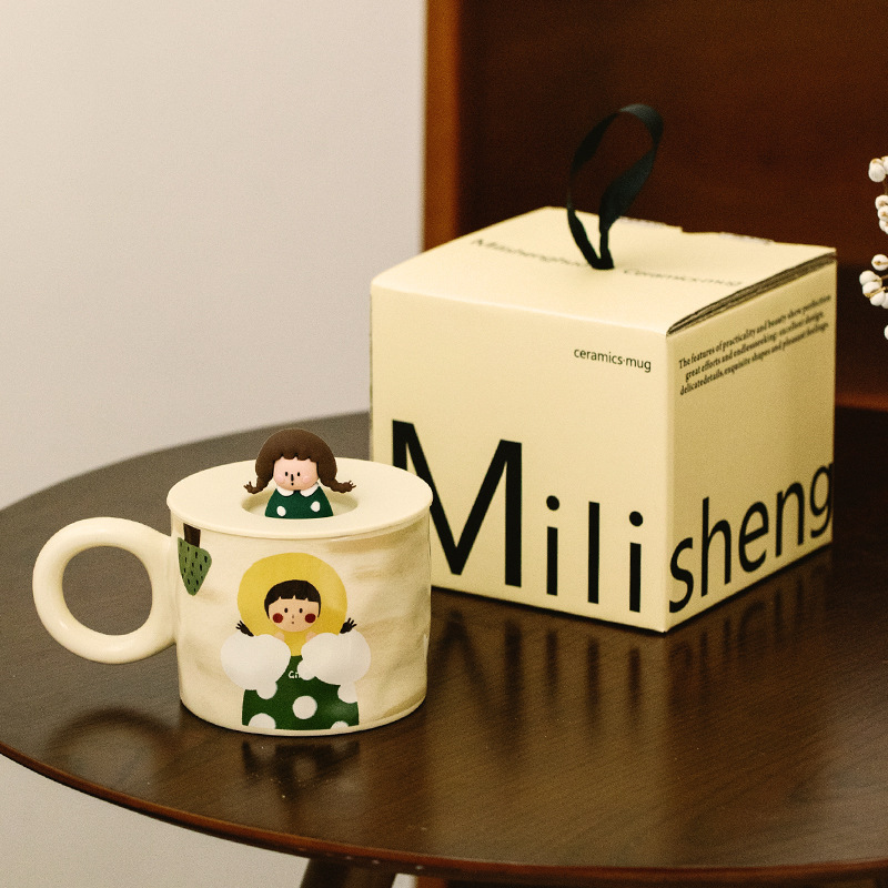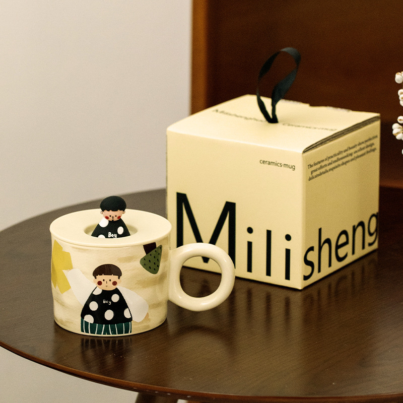 머그잔 소년 소녀 커플 워터 컵 뚜껑이있는 세라믹 컵 한 쌍 커플 아침 식사 컵 커피 컵 도매