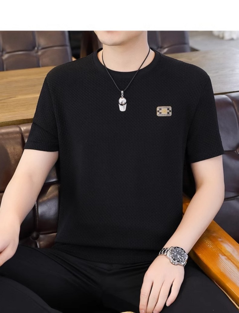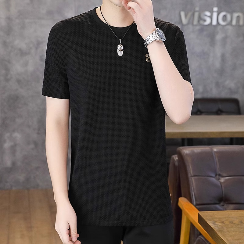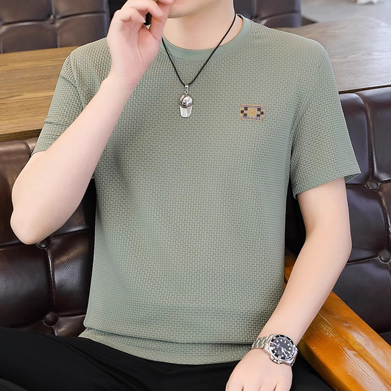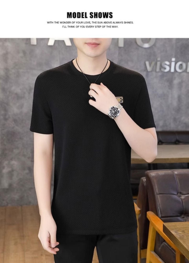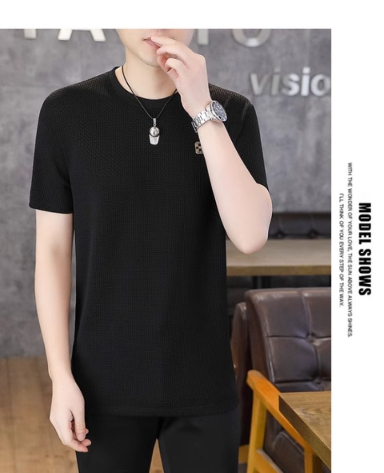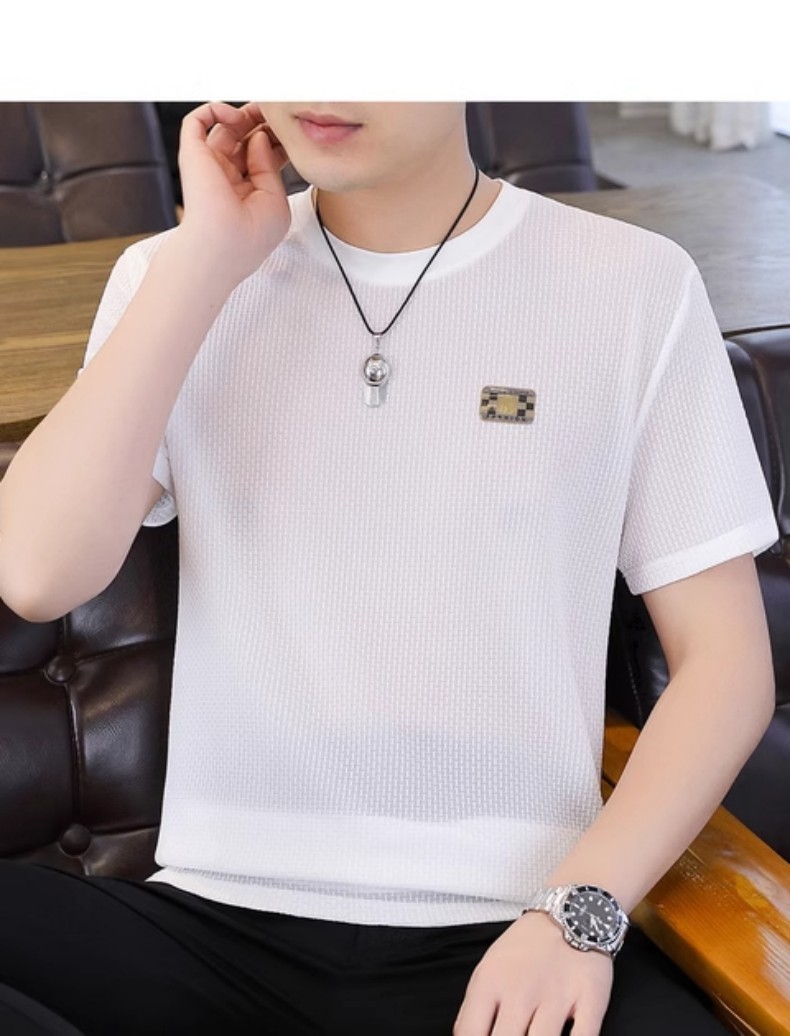 아이스 실크 반팔 티셔츠 남성용 여름 얇은 통기성 슬림 핏 어퍼 의류 플러스 사이즈 티셔츠 남성용 할로우 반소매 티셔츠스토어 가기