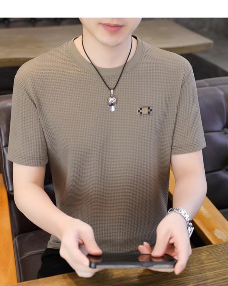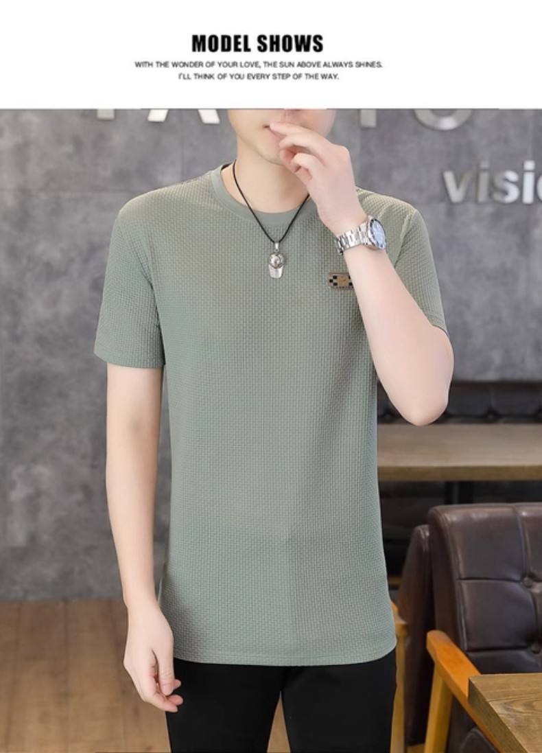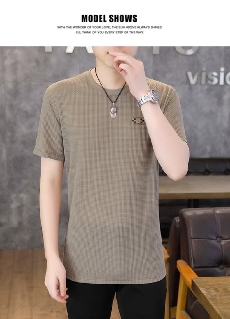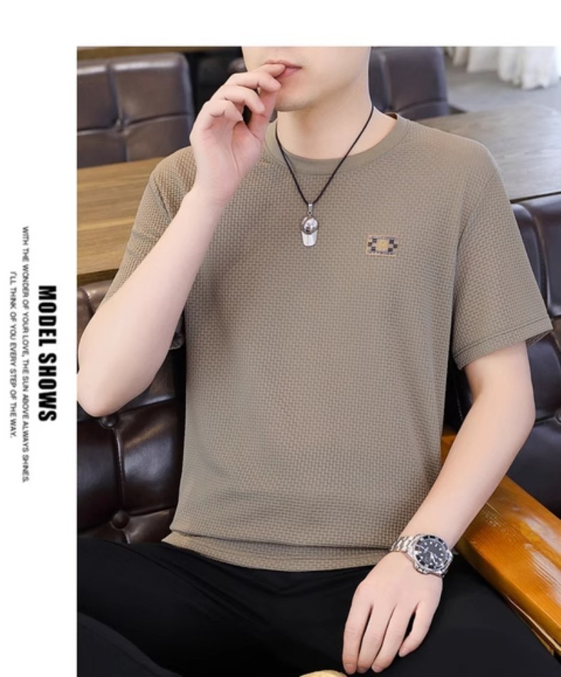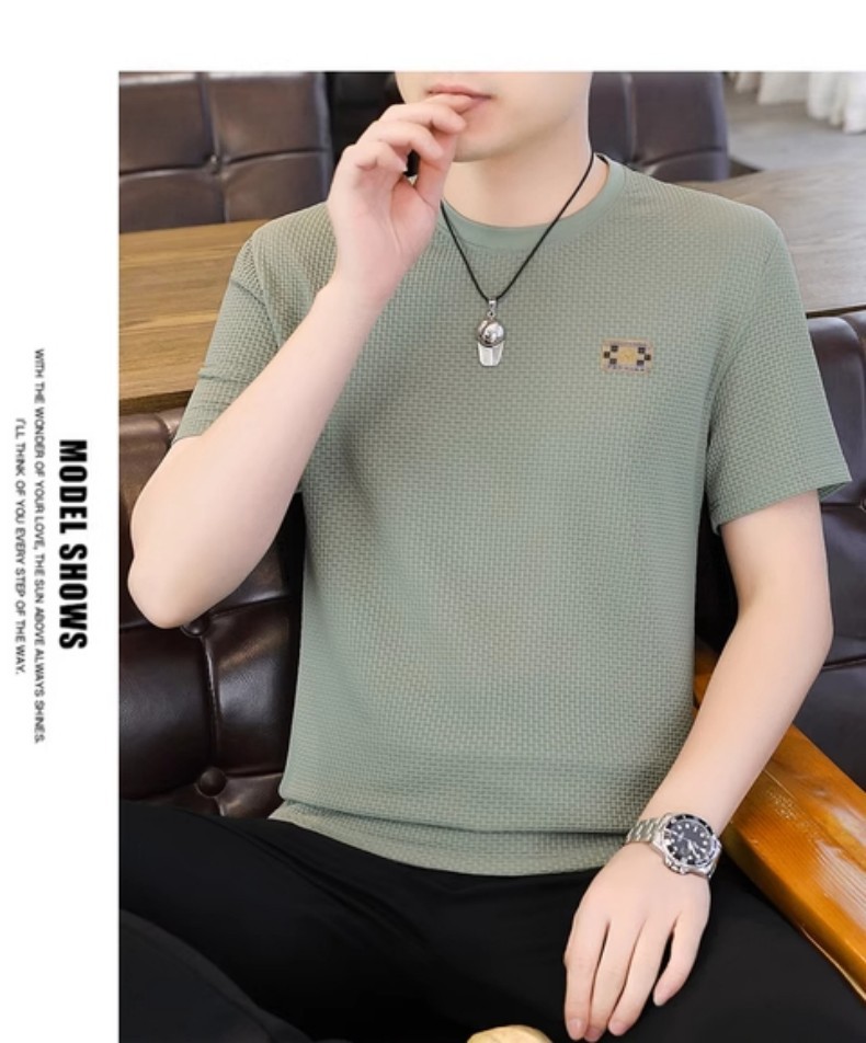 아이스 실크 반팔 티셔츠 남성용 여름 얇은 통기성 슬림 핏 어퍼 의류 플러스 사이즈 티셔츠 남성용 할로우 반소매 티셔츠스토어 가기