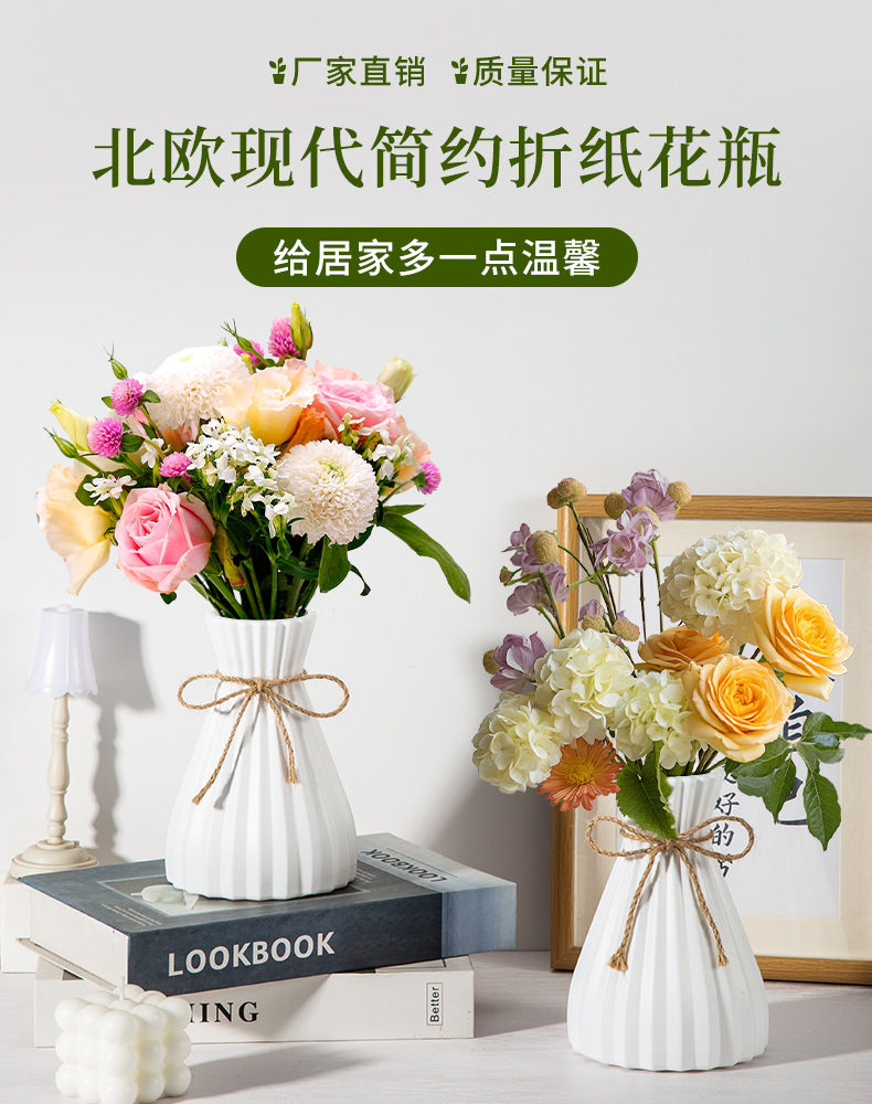 새로운 중국 스타일 꽃병 종이 접기 창조적 인 플라스틱 꽃병 블로우 성형 물 저장 꽃병 시뮬레이션 꽃 가짜 꽃병스토어 가기