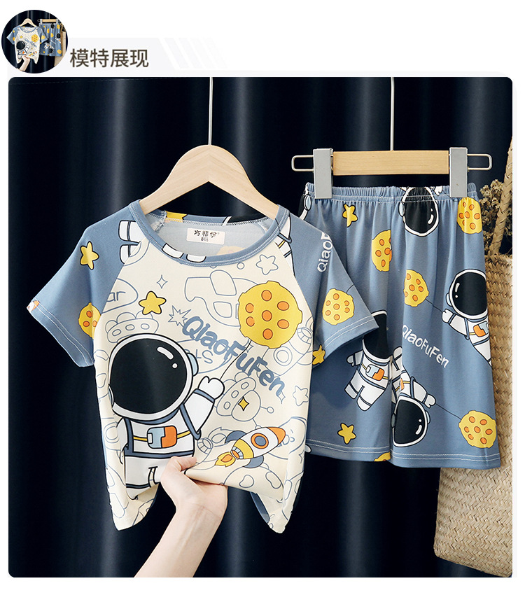 국경 간 도매 여름 어린이 잠옷 반팔 반바지 소년과 소녀 만화 중대형 어린이 소년 가정 의류 세트 얇은스토어 가기