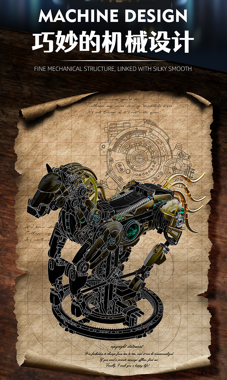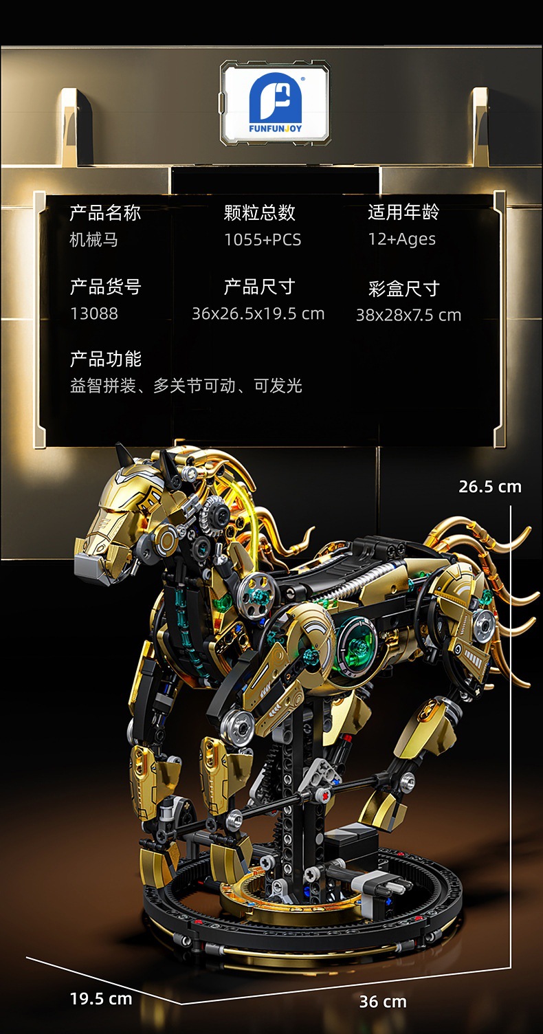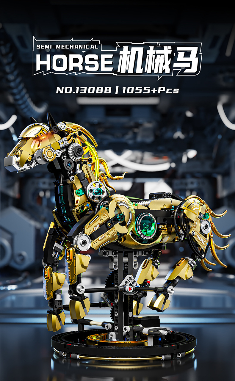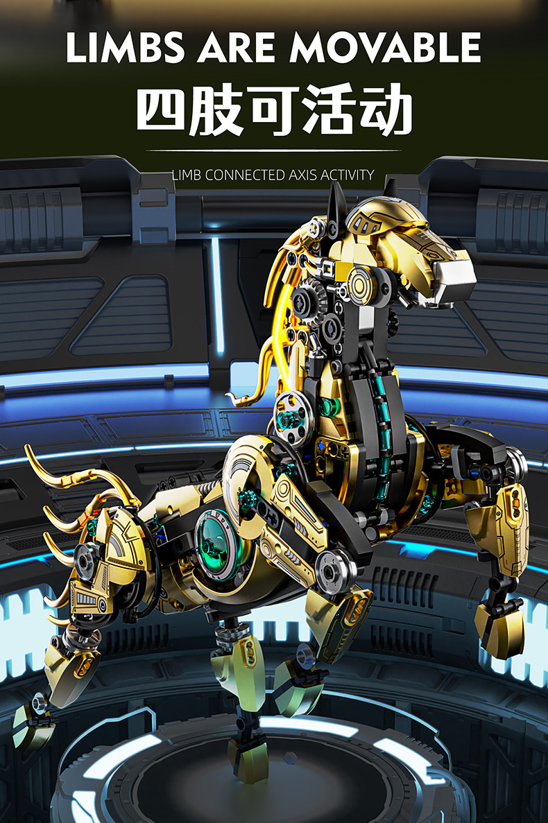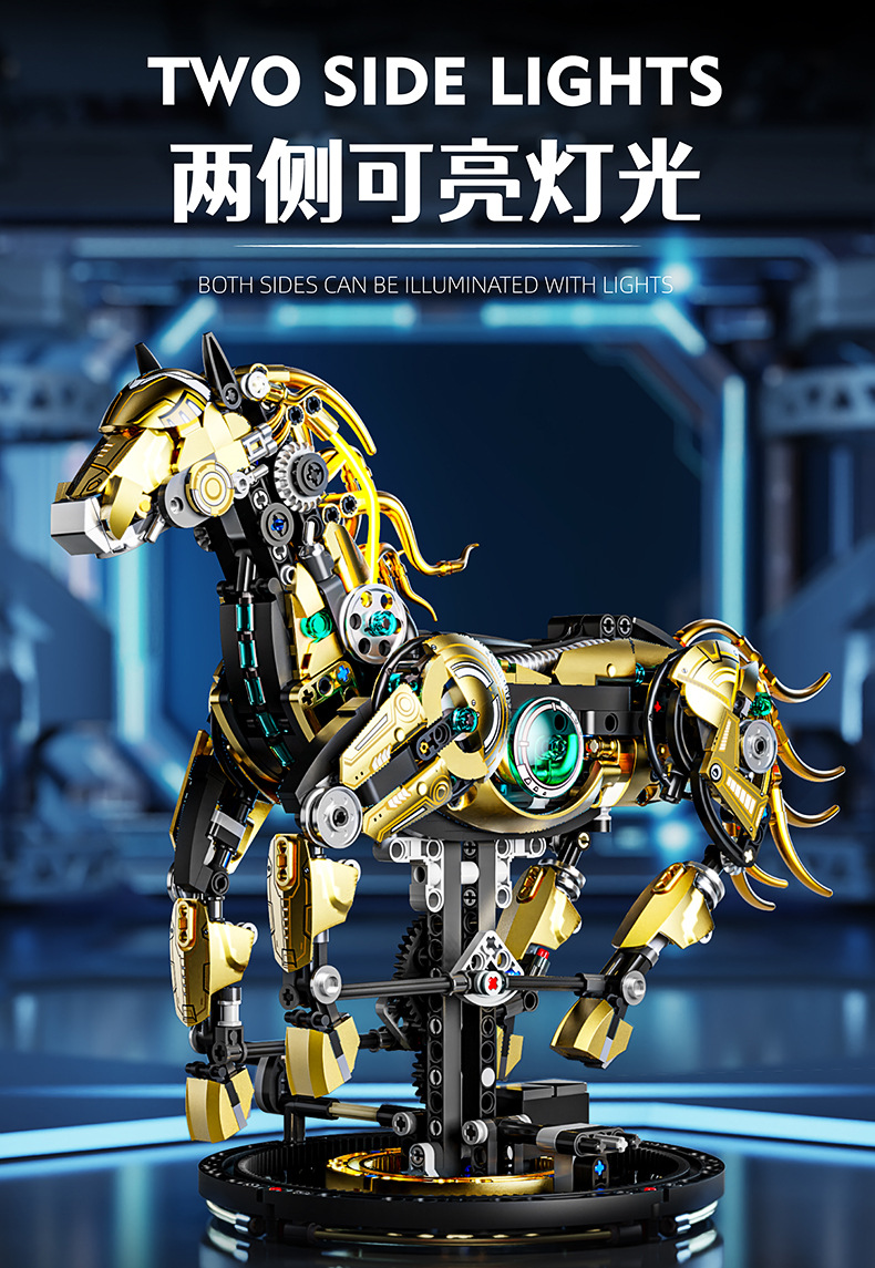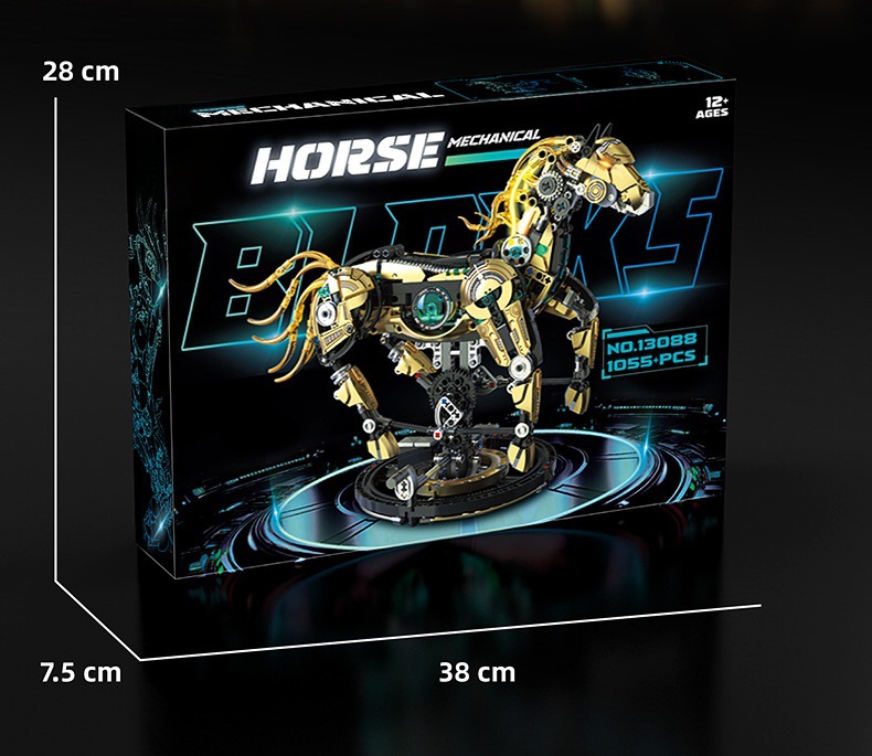 국경 간 호환 가능한 소형 블록 기계식 말 조립식 발광 DIY 교육용 장난감 모델 장식품 도매스토어 가기