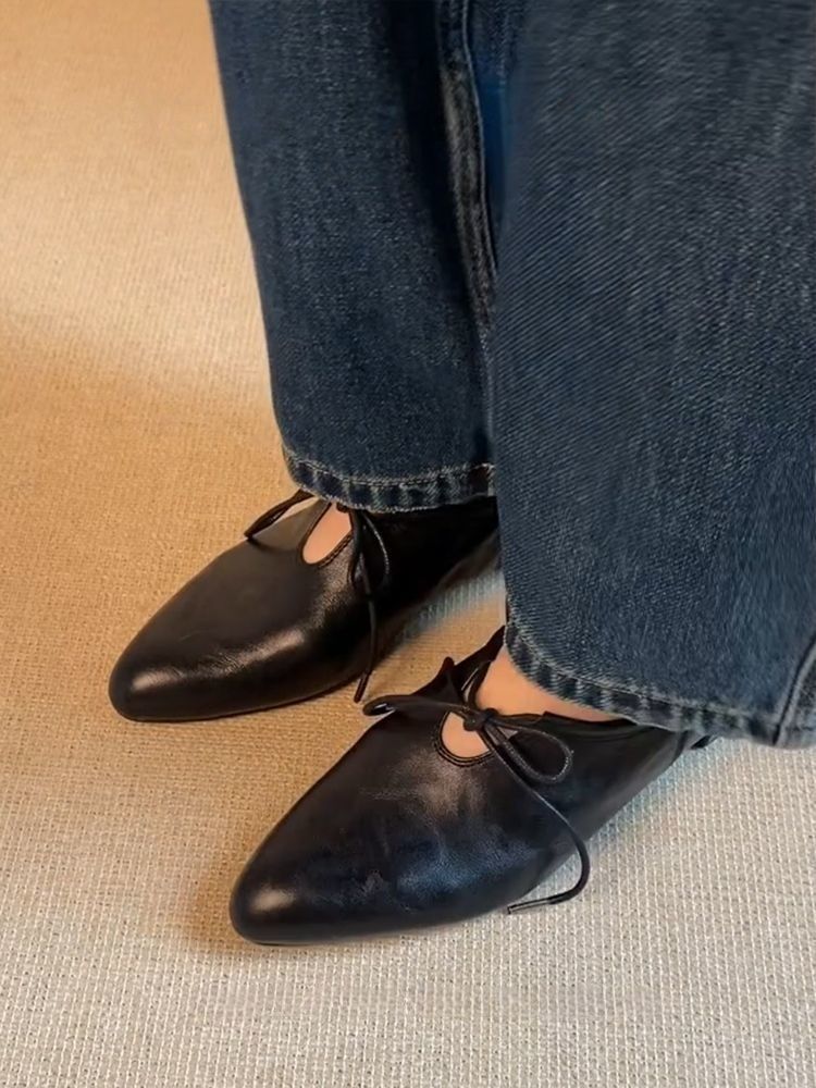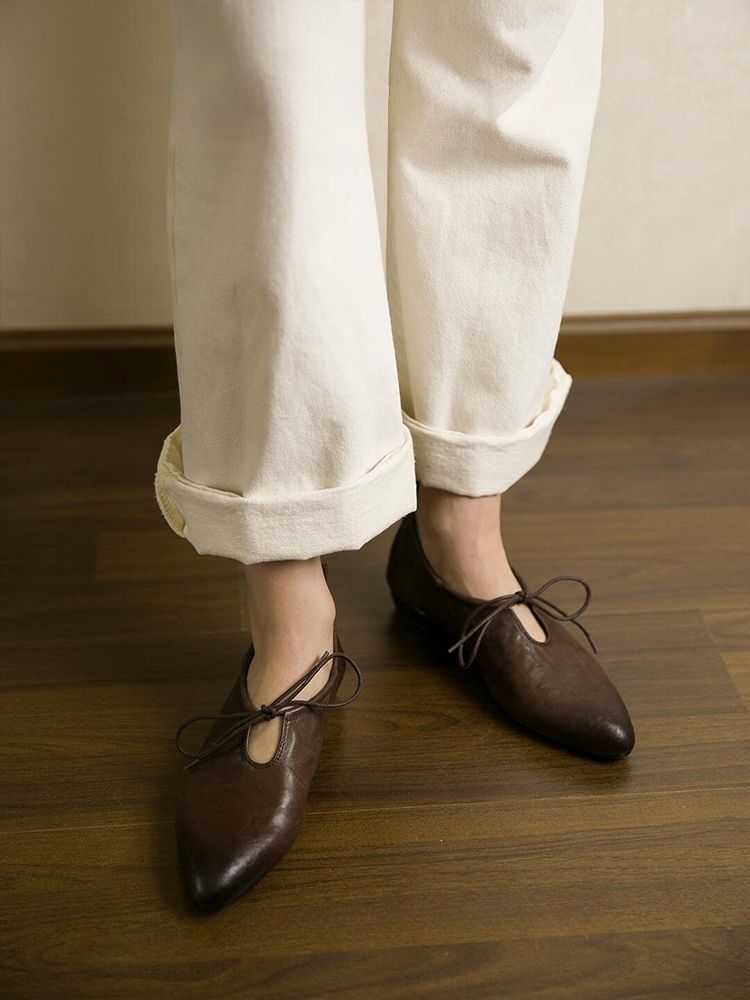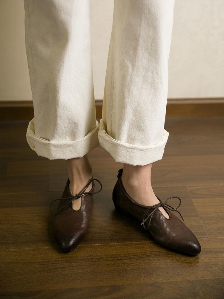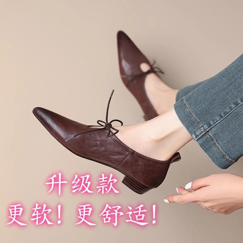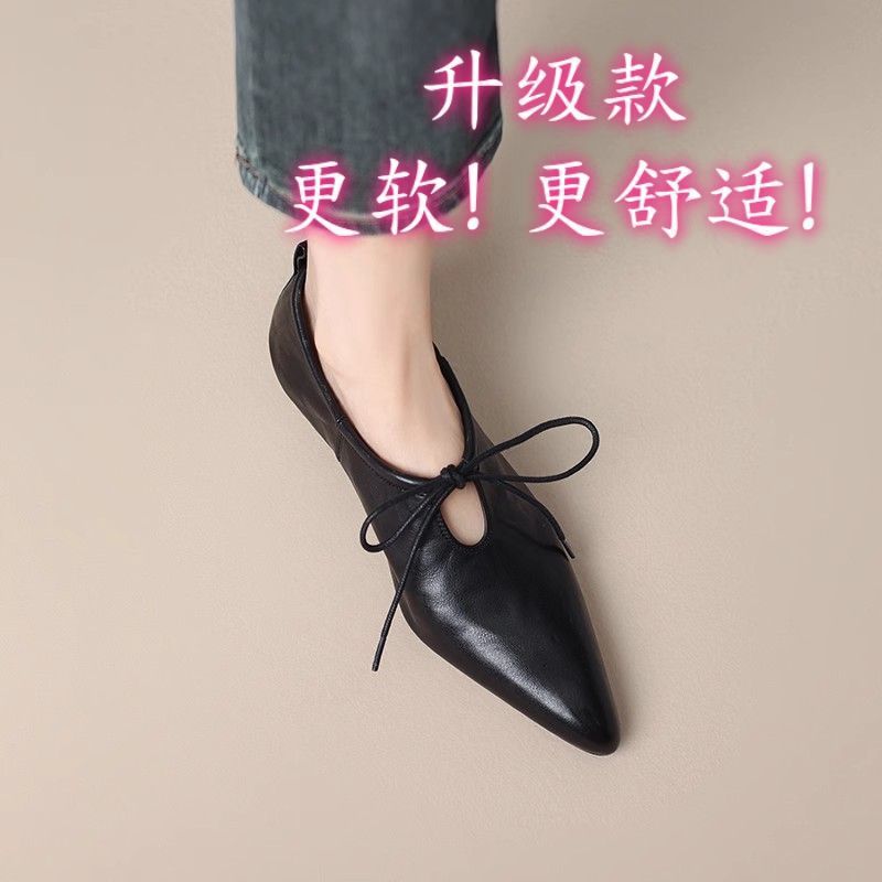 여성을위한 부드러운 가죽 프랑스어 뾰족한 작은 가죽 신발 여름을위한 새로운 부드러운 표면 낮은 굽 마녀 신발 편안한 틈새 발레 신발스토어 가기
