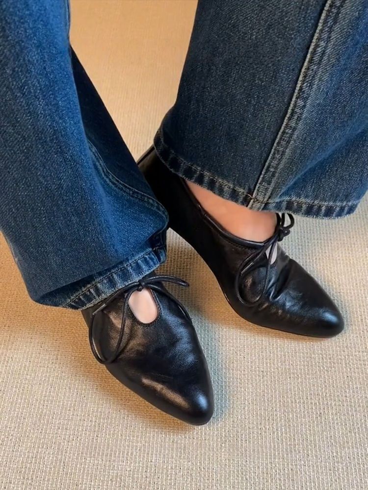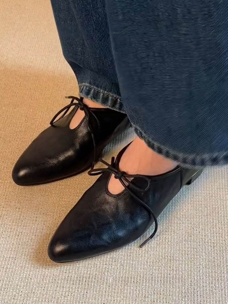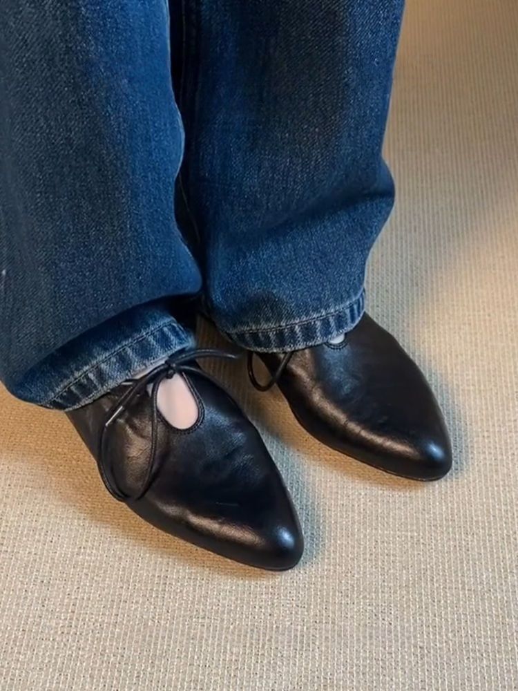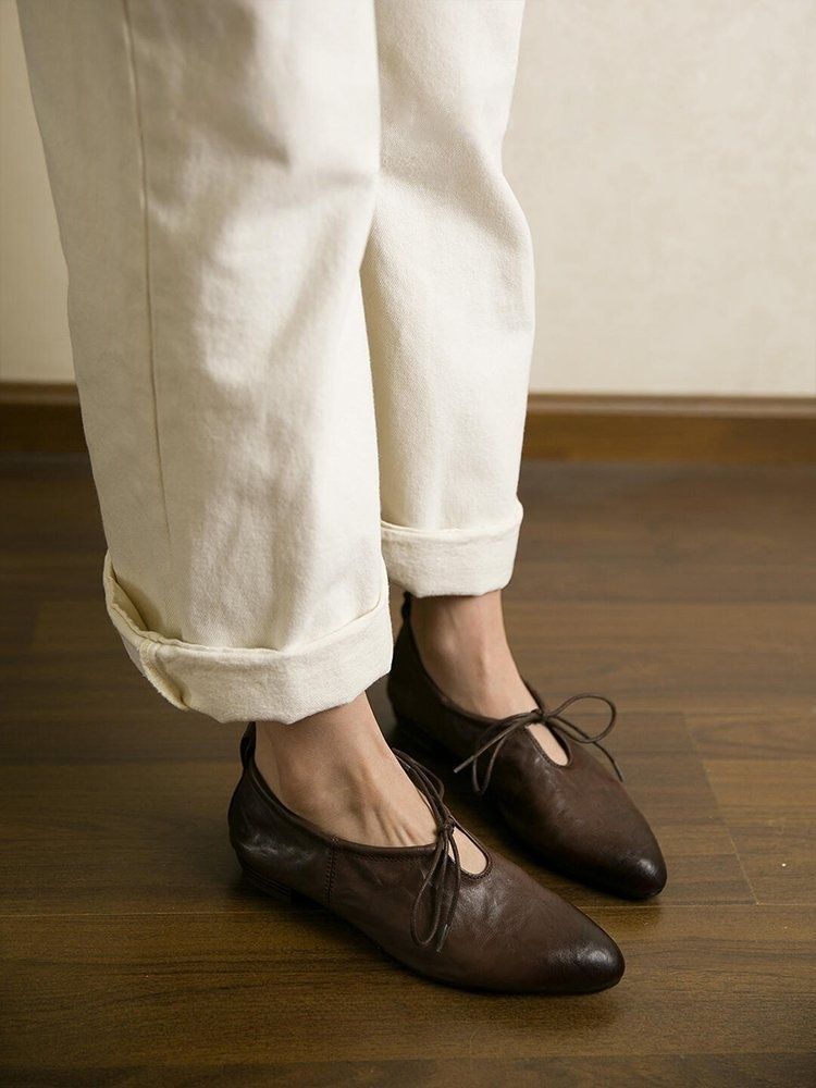 여성을위한 부드러운 가죽 프랑스어 뾰족한 작은 가죽 신발 여름을위한 새로운 부드러운 표면 낮은 굽 마녀 신발 편안한 틈새 발레 신발스토어 가기