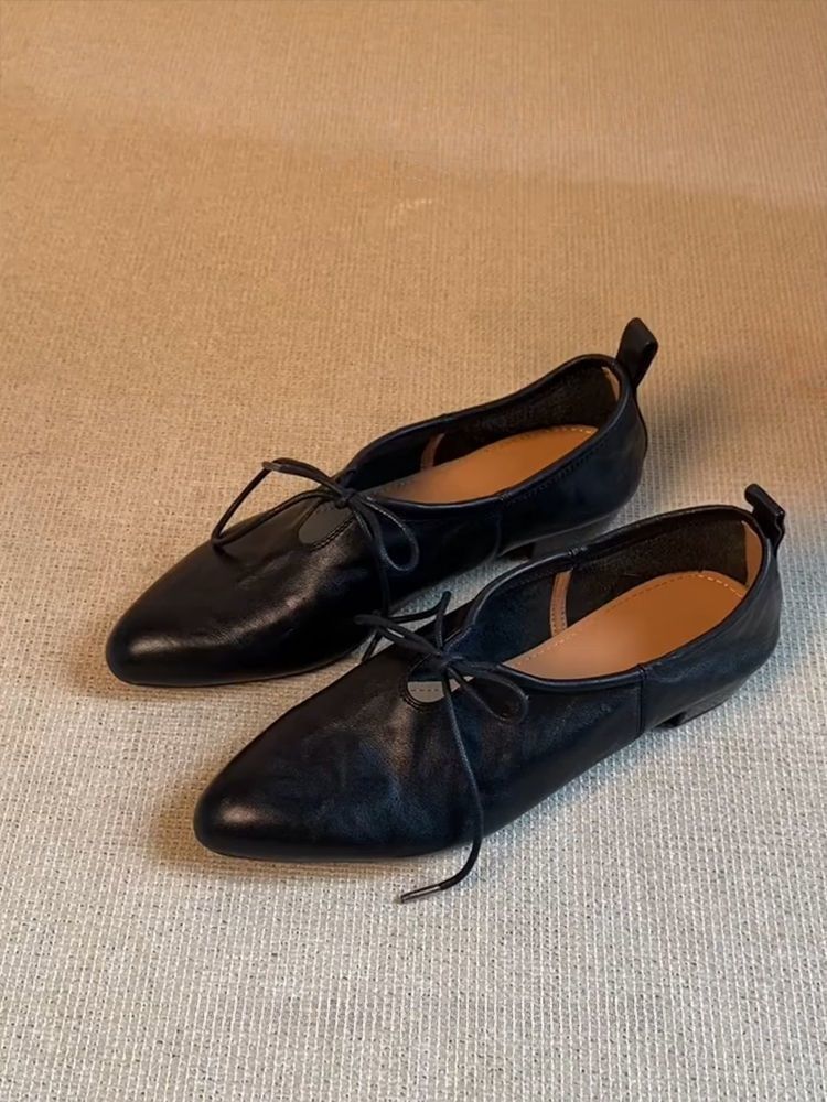 여성을위한 부드러운 가죽 프랑스어 뾰족한 작은 가죽 신발 여름을위한 새로운 부드러운 표면 낮은 굽 마녀 신발 편안한 틈새 발레 신발