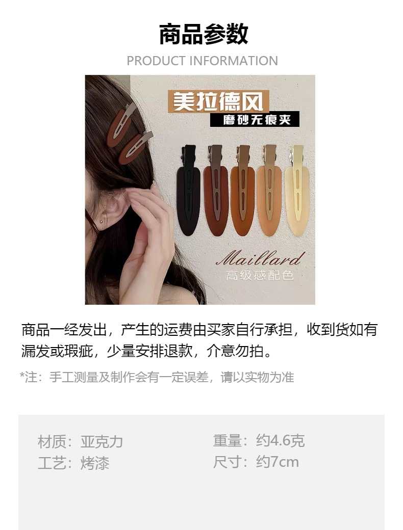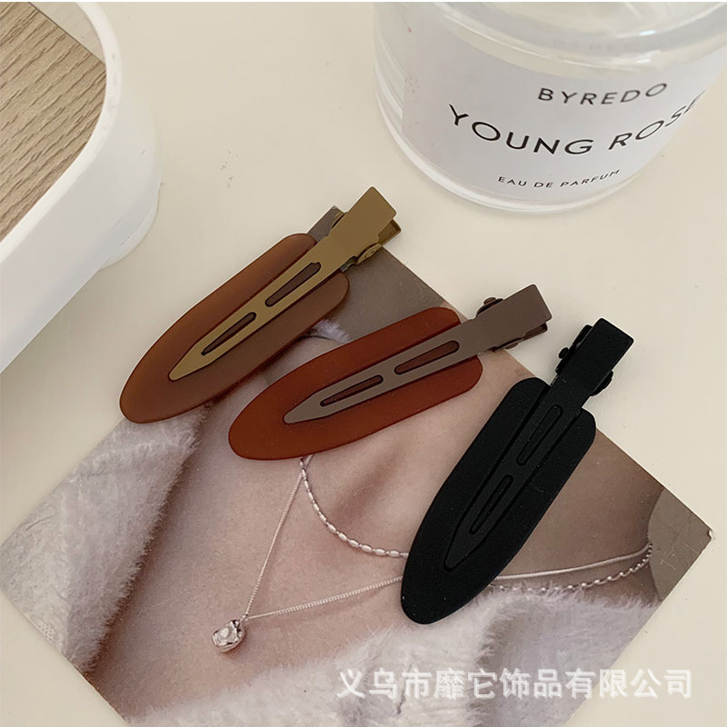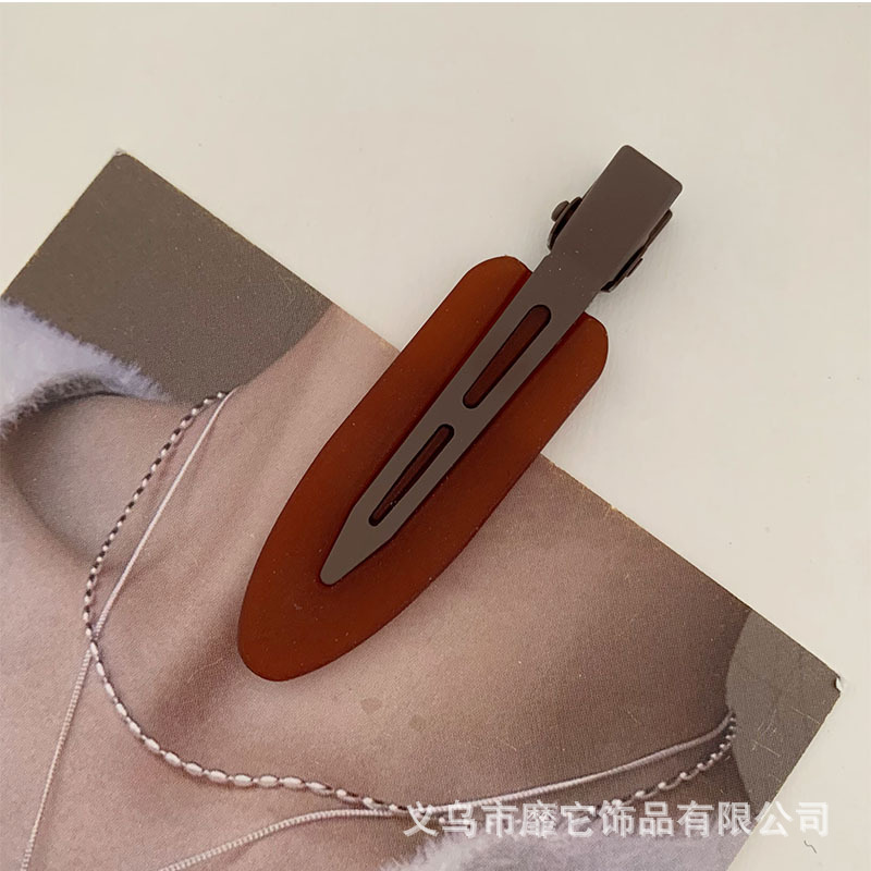 메일라드 커피 컬러 무봉제 머리핀 아크릴 반투명 작은 삽 덕빌 클립 이마 측면 일자 메이크업 클립