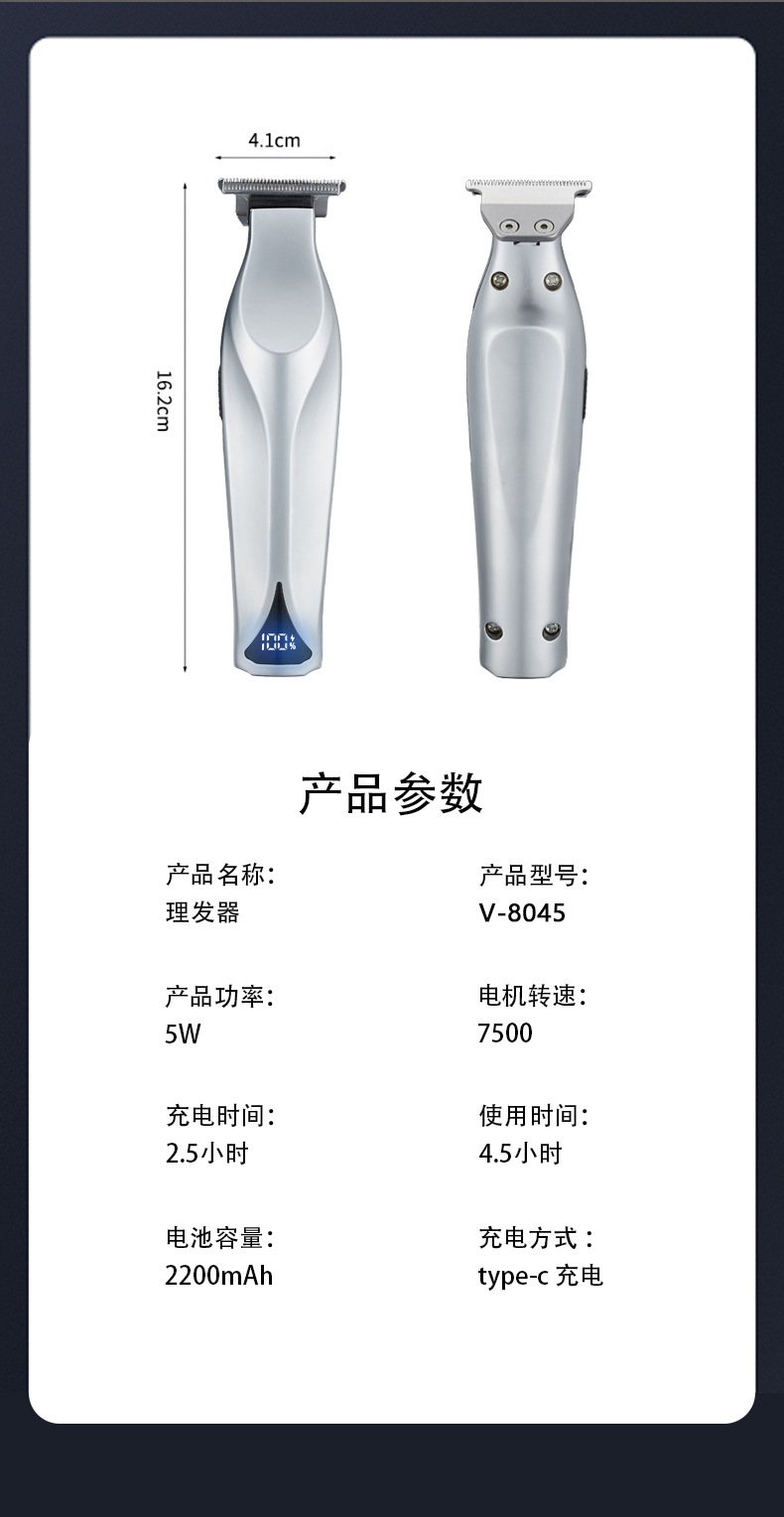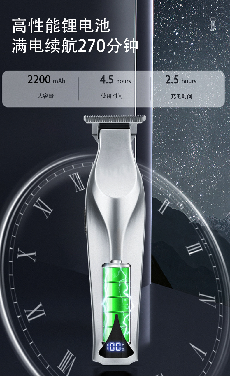 국경 간 남성 미용실 전용 전기 헤어 클리퍼 LCD 디스플레이 오일 헤드 가위 조각 전기 클리퍼