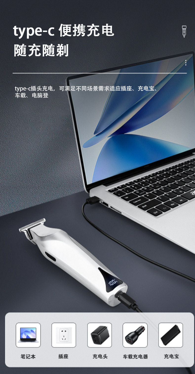 국경 간 남성 미용실 전용 전기 헤어 클리퍼 LCD 디스플레이 오일 헤드 가위 조각 전기 클리퍼스토어 가기