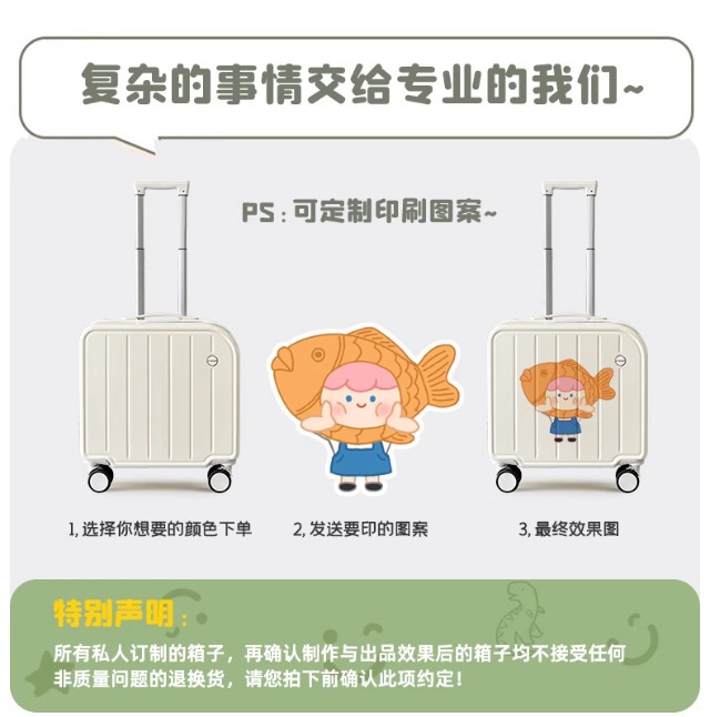 맞춤형 로고 인쇄가 가능한 트롤리 케이스 18inch 기내용 캐리어 어린이 DIY 맞춤형 사진 캐리어 여행용 캐리어스토어 가기