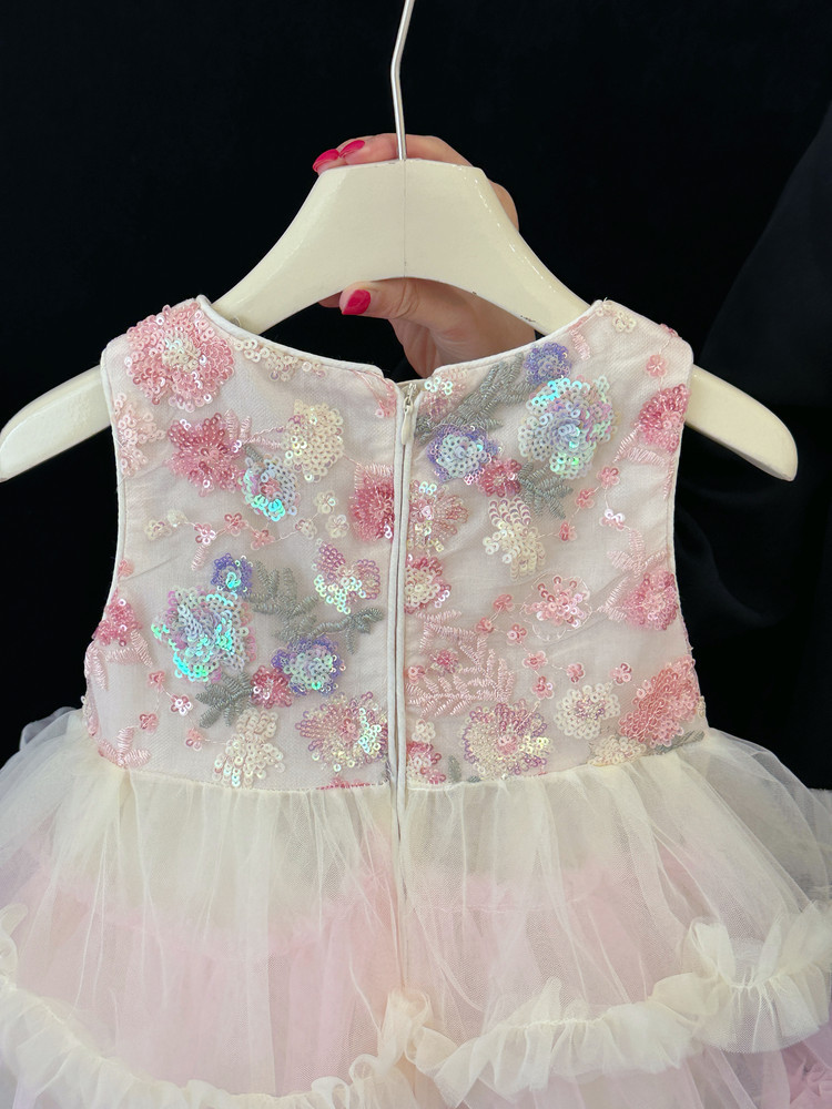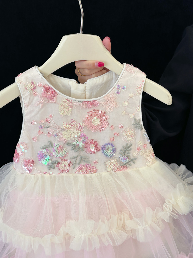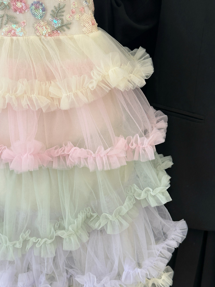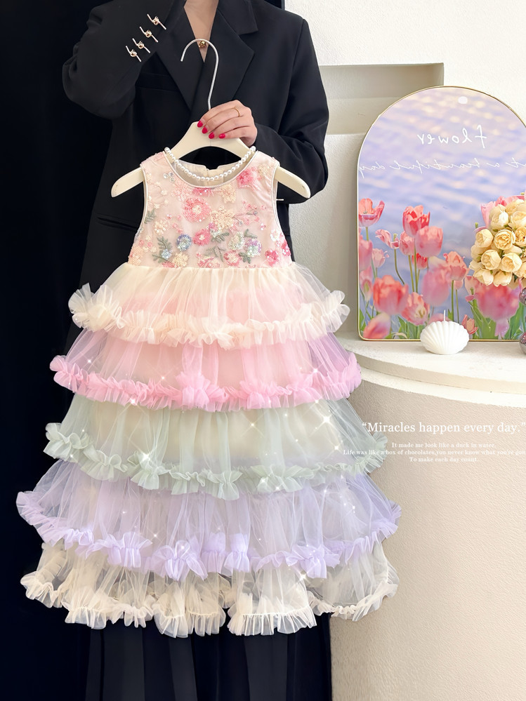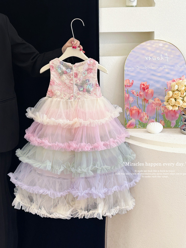 로리타 공주 드레스 어린이 여름 새 스타일 아기 소녀 달콤한 무지개 메쉬 드레스 민소매 조끼 드레스 유행
