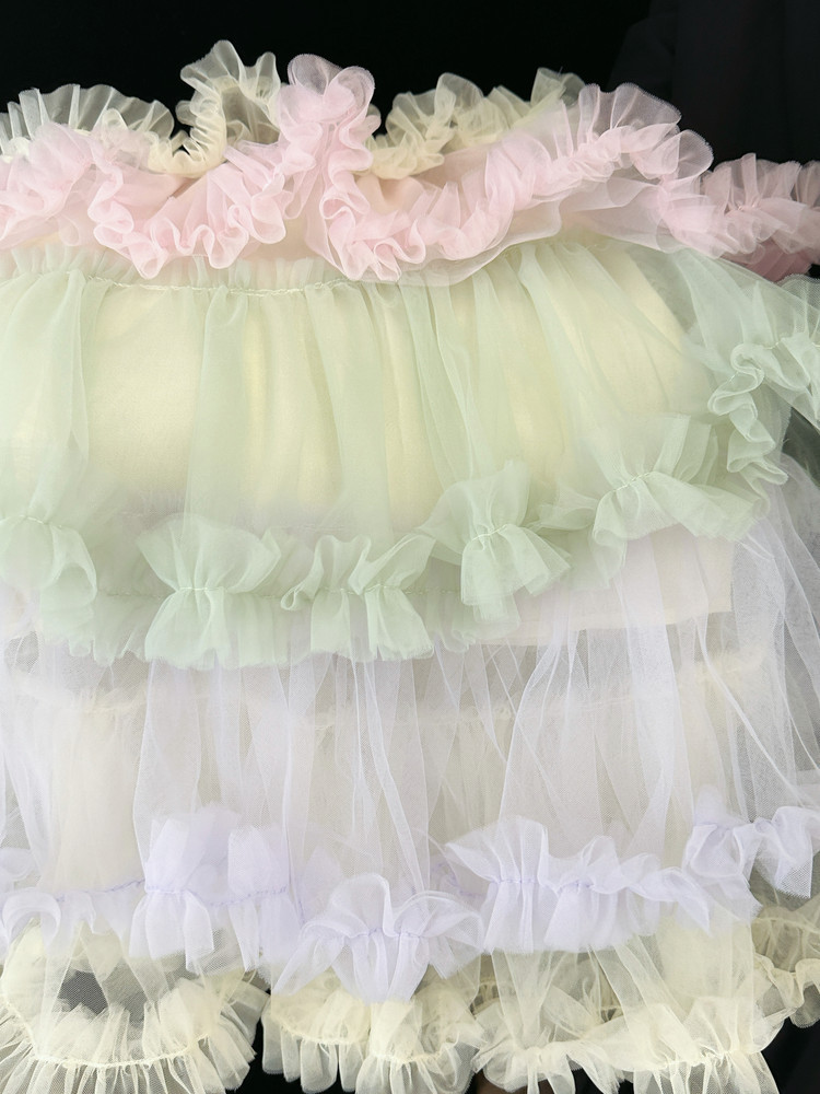 로리타 공주 드레스 어린이 여름 새 스타일 아기 소녀 달콤한 무지개 메쉬 드레스 민소매 조끼 드레스 유행스토어 가기