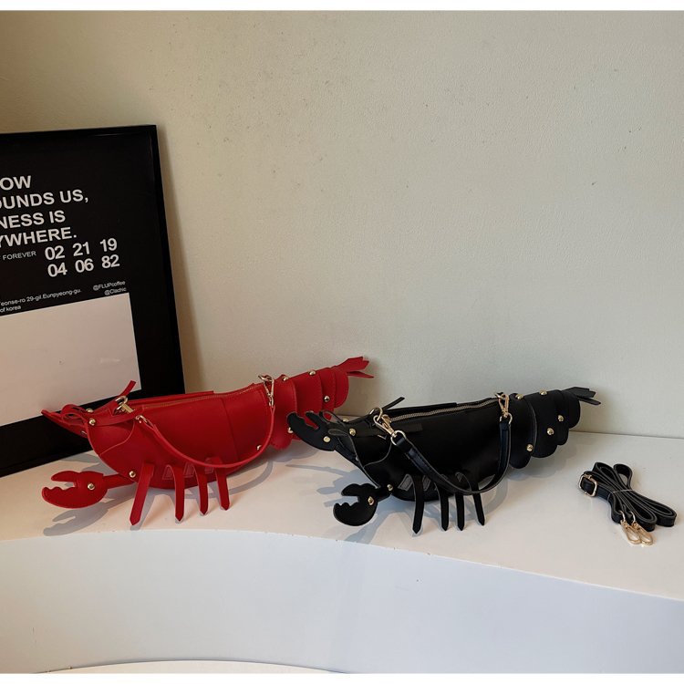 국경 간 귀여운 시뮬레이션 랍스터 작은 가방 여성 창조적 인 리벳 한국 스타일 맞춤형 여성 가방 어깨 크로스 바디 핸드백