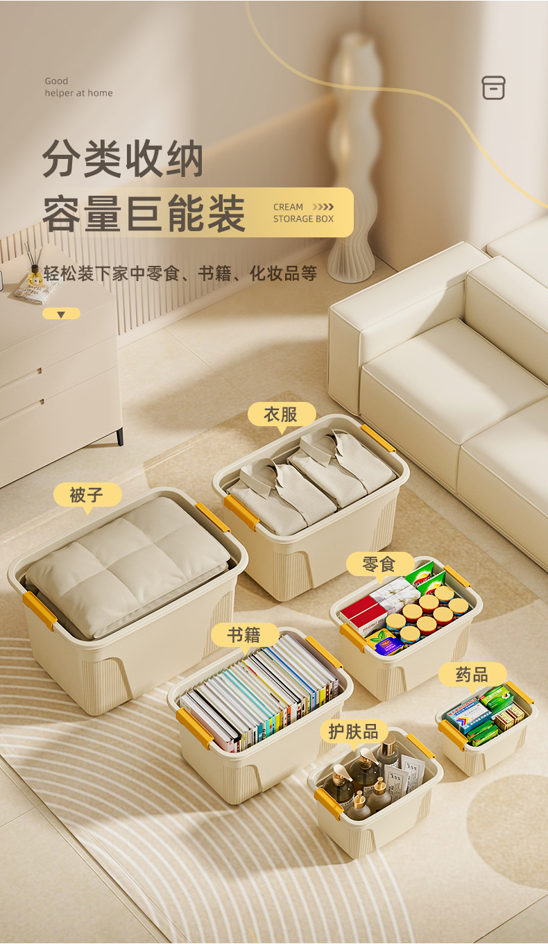 가정용 기숙사 간식, 옷, 장난감 보관 상자, 잡다한 보관 상자, 속옷 데스크탑을 위한 초대형 플라스틱 보관 상자스토어 가기