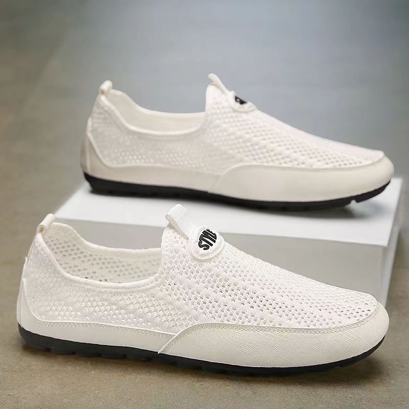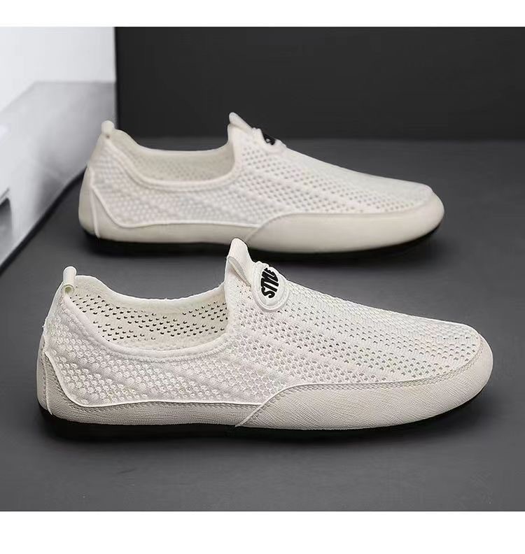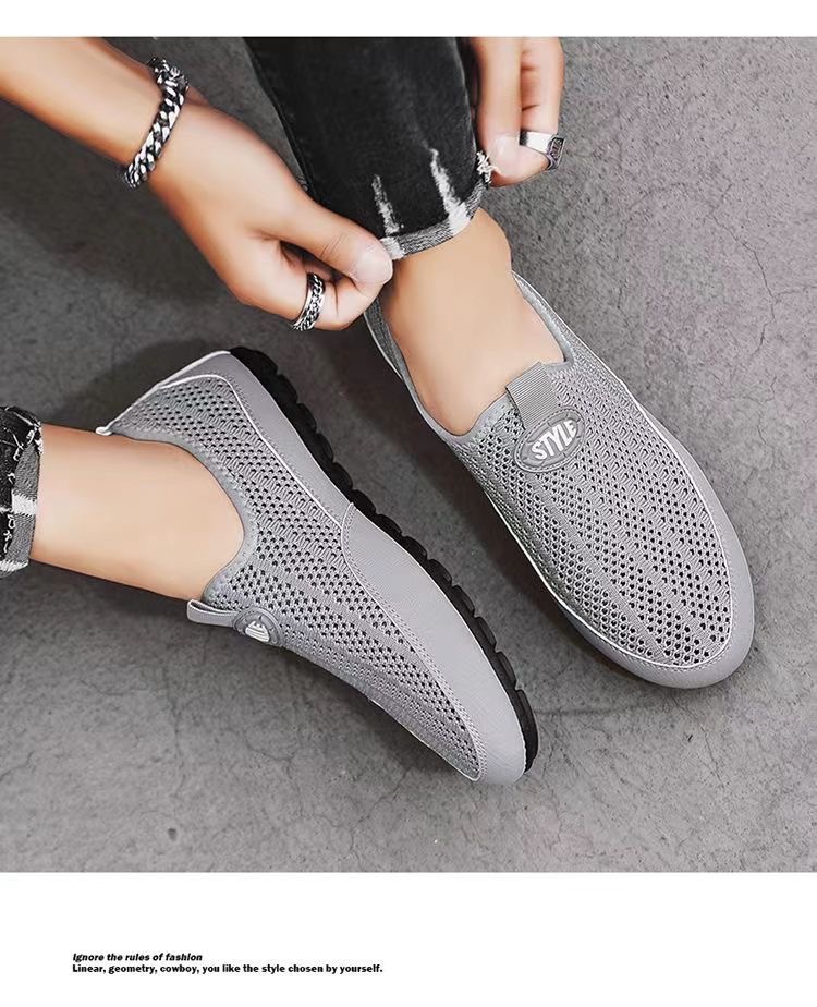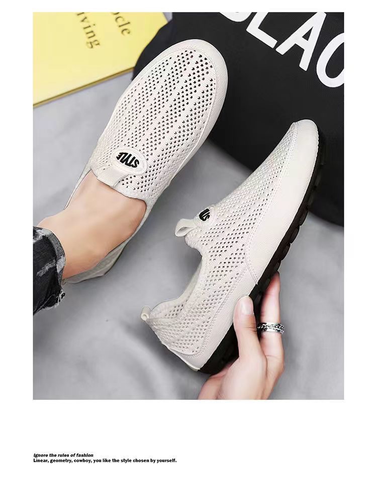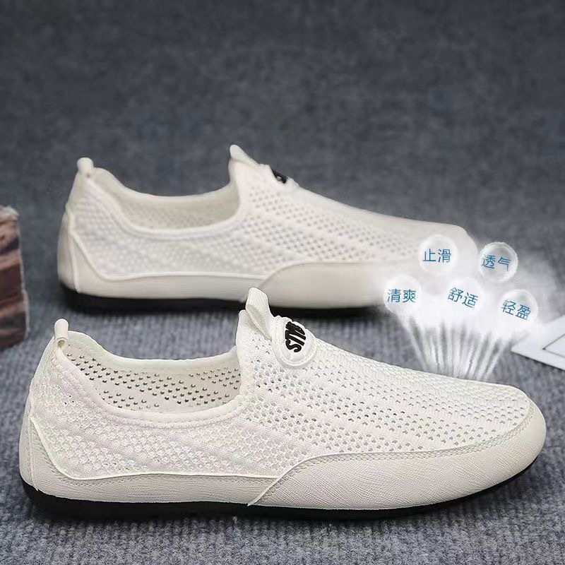 남성 신발 여름 통기성 캐주얼 신발 메쉬 얇은 게으른 신발 슬립 온 메쉬 중공 비니 신발 스포츠 남성 신발