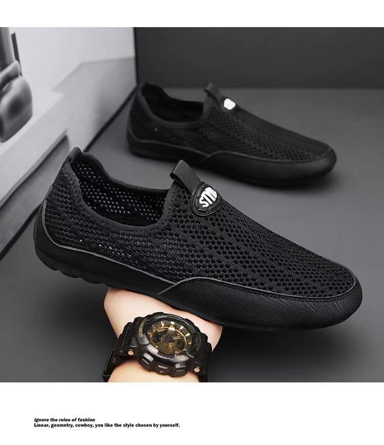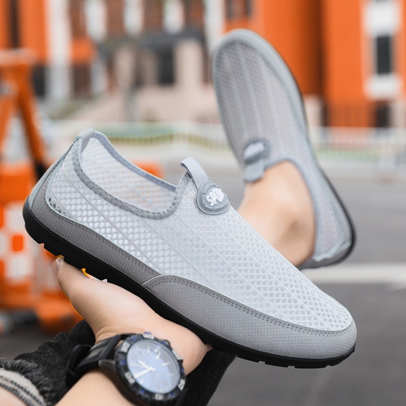 남성 신발 여름 통기성 캐주얼 신발 메쉬 얇은 게으른 신발 슬립 온 메쉬 중공 비니 신발 스포츠 남성 신발스토어 가기