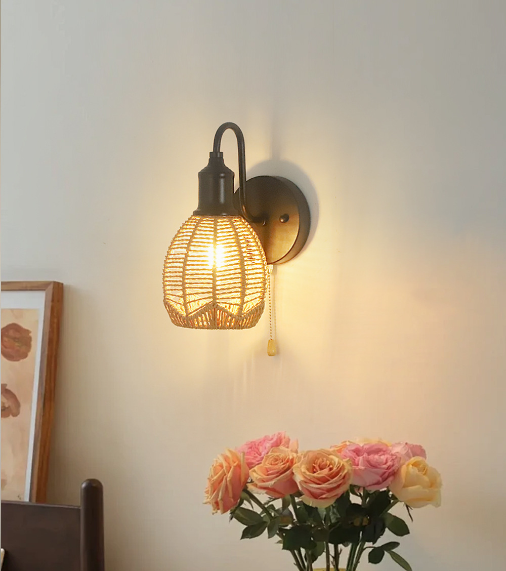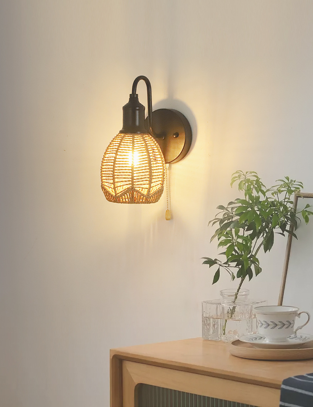 등나무 목가적 스타일 지퍼 침실 머리맡 통로 배경 벽 램프 현대 짠 케이지 램프 당김 벽 램프스토어 가기