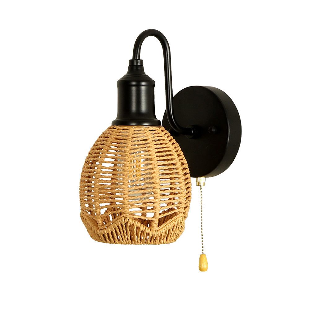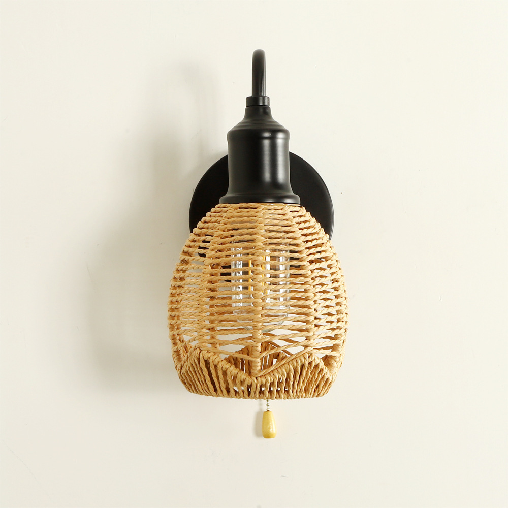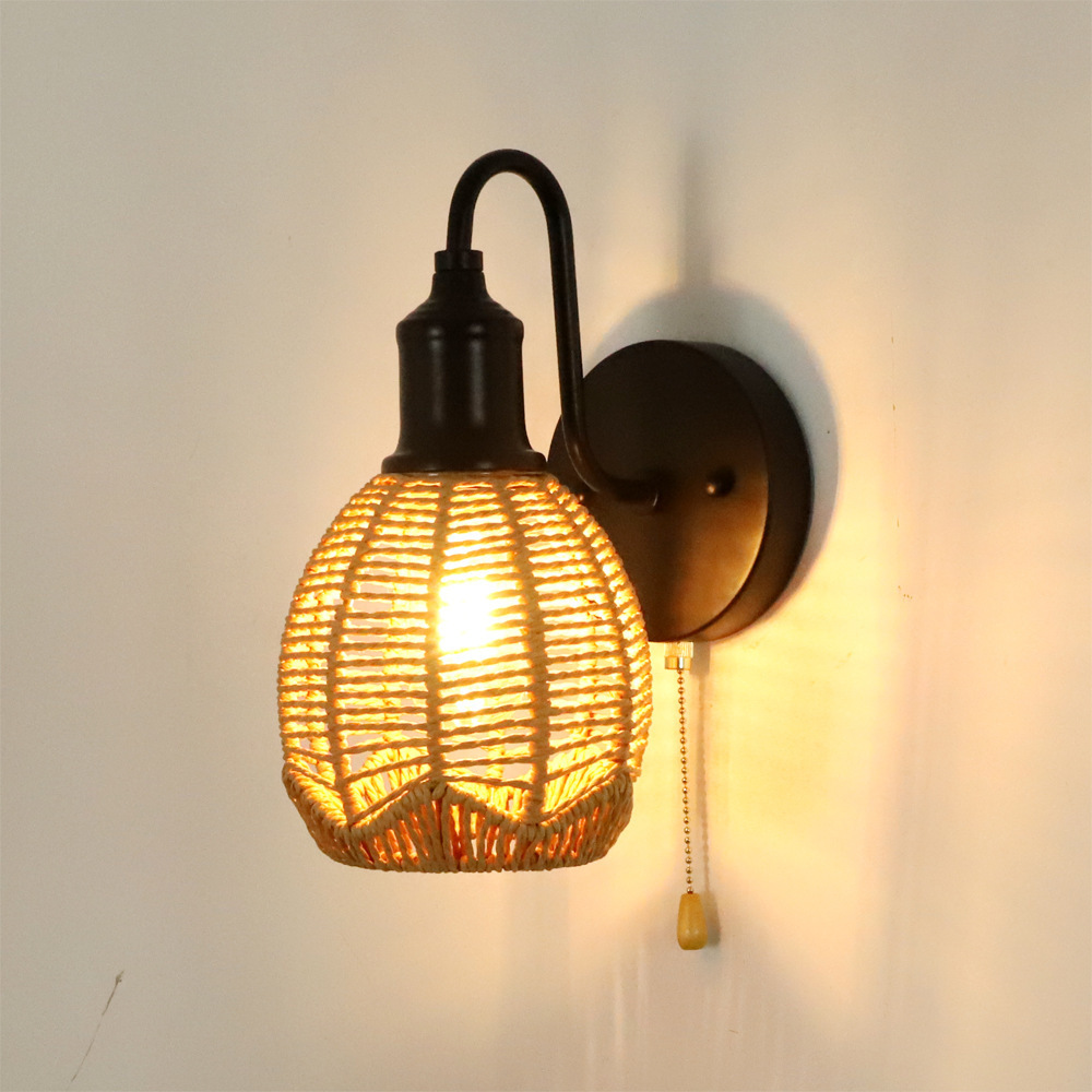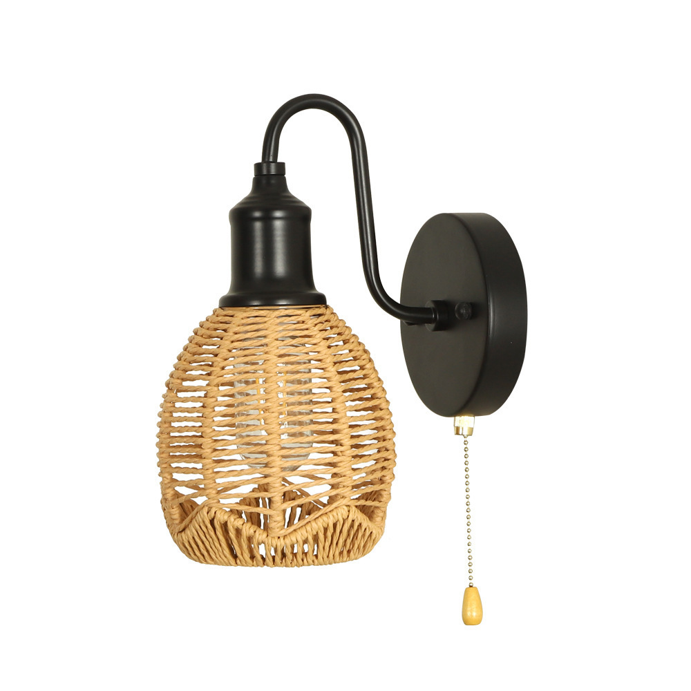 등나무 목가적 스타일 지퍼 침실 머리맡 통로 배경 벽 램프 현대 짠 케이지 램프 당김 벽 램프