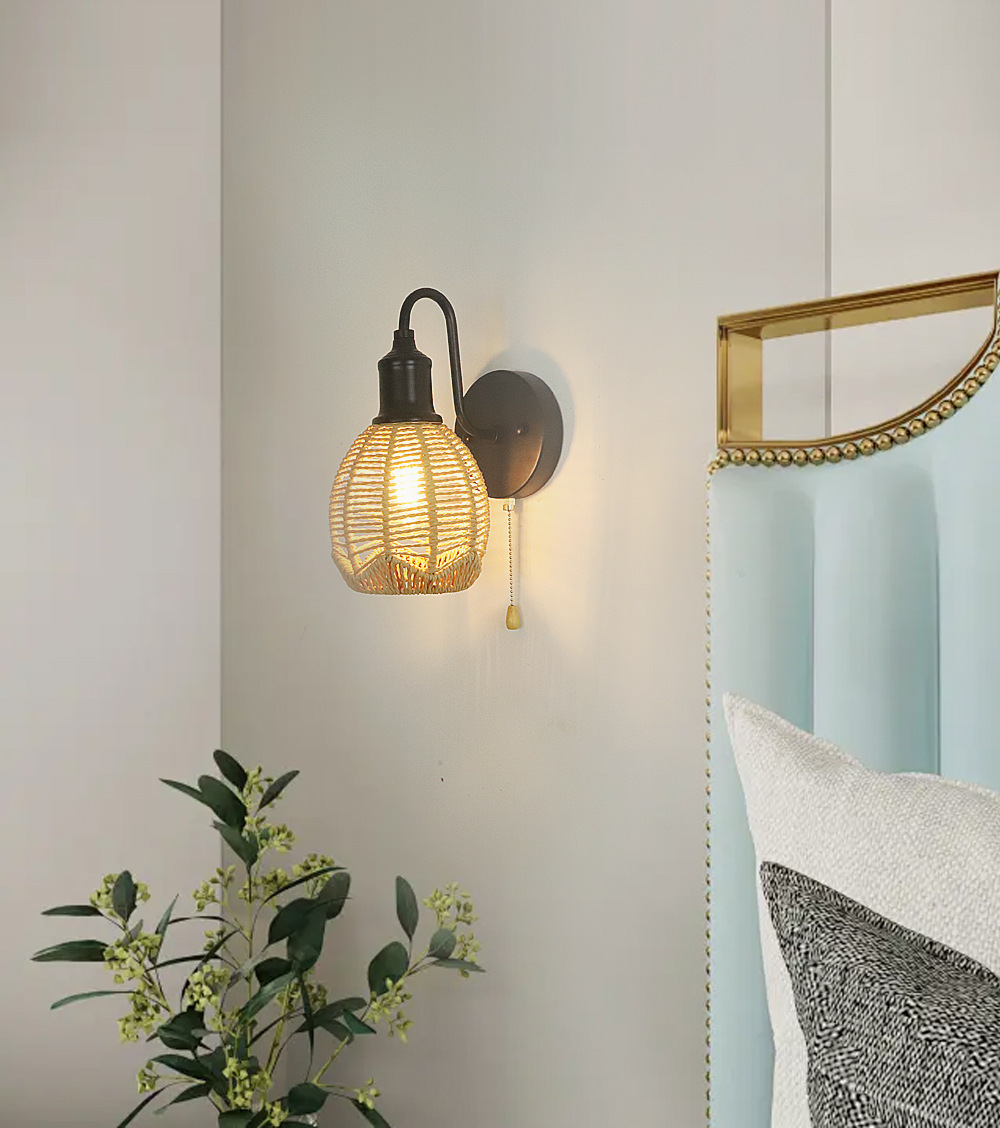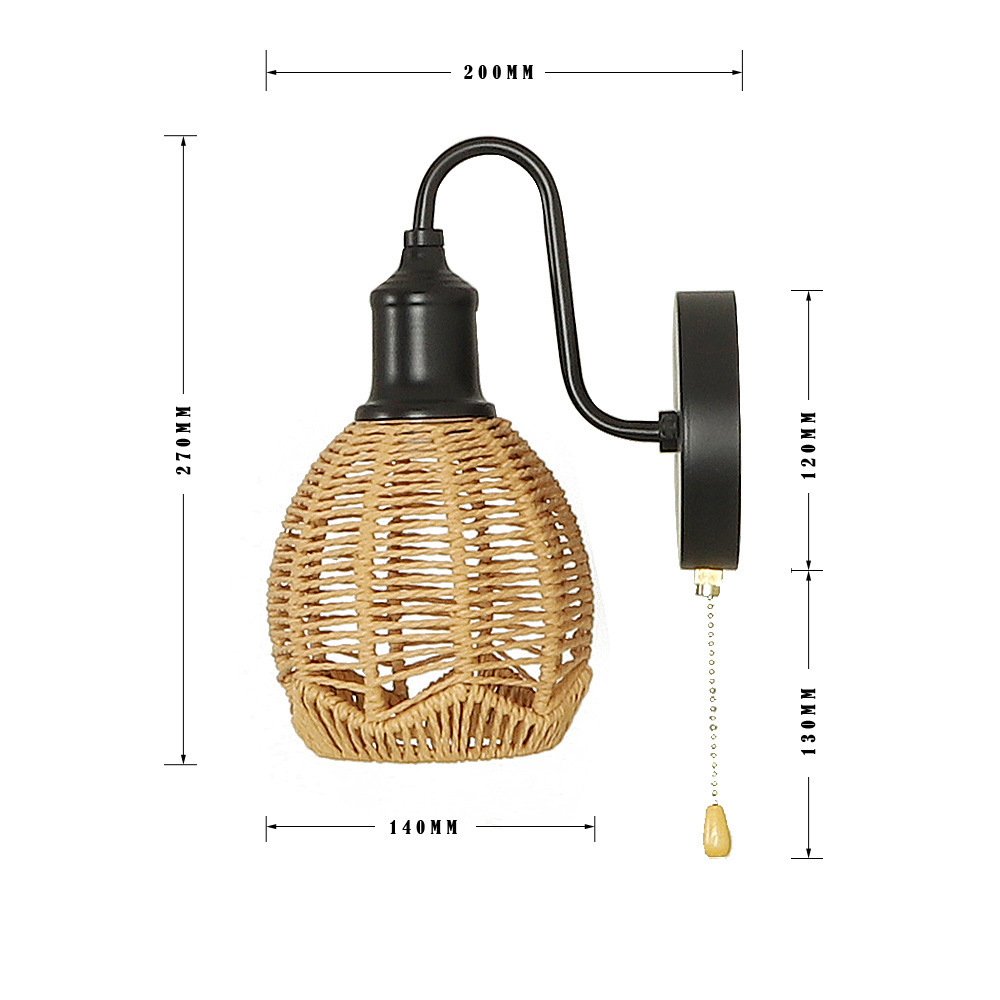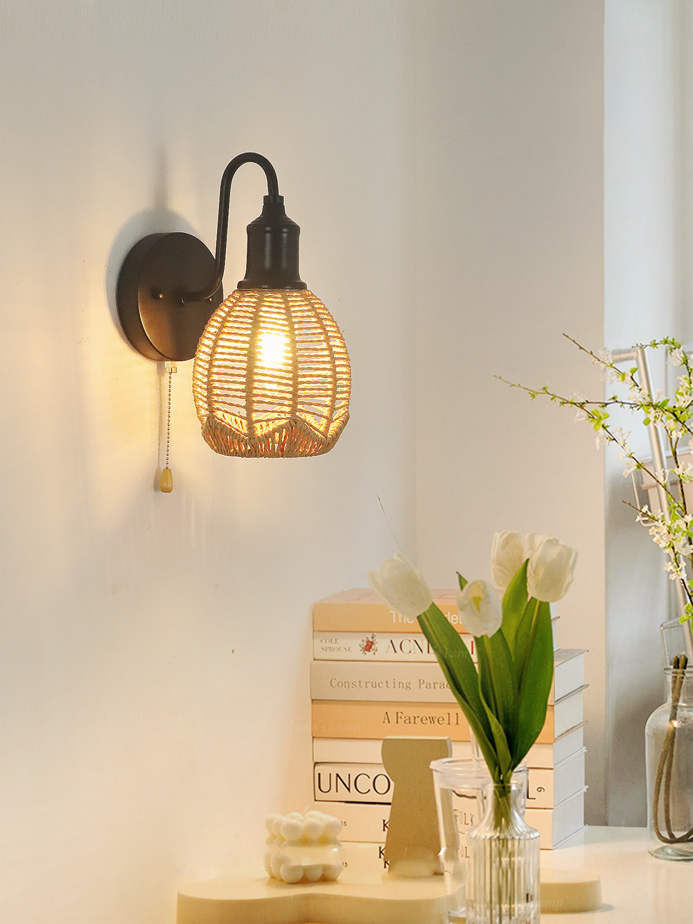 등나무 목가적 스타일 지퍼 침실 머리맡 통로 배경 벽 램프 현대 짠 케이지 램프 당김 벽 램프