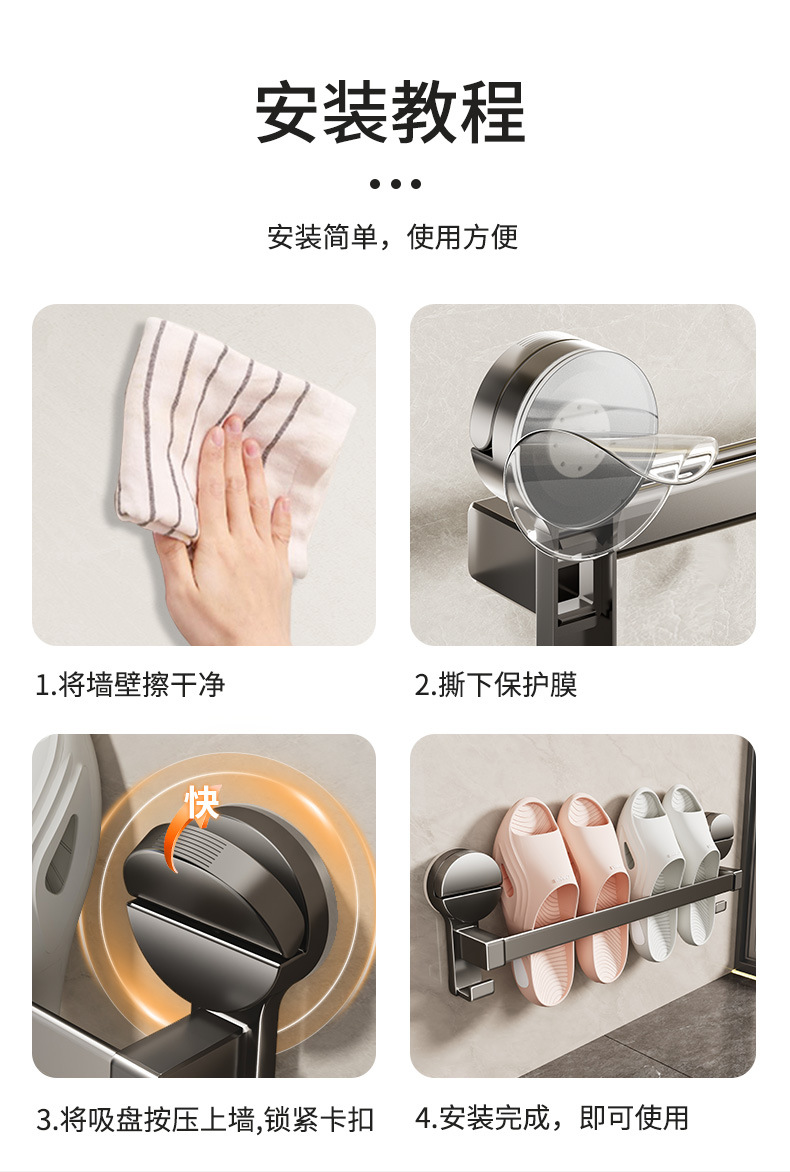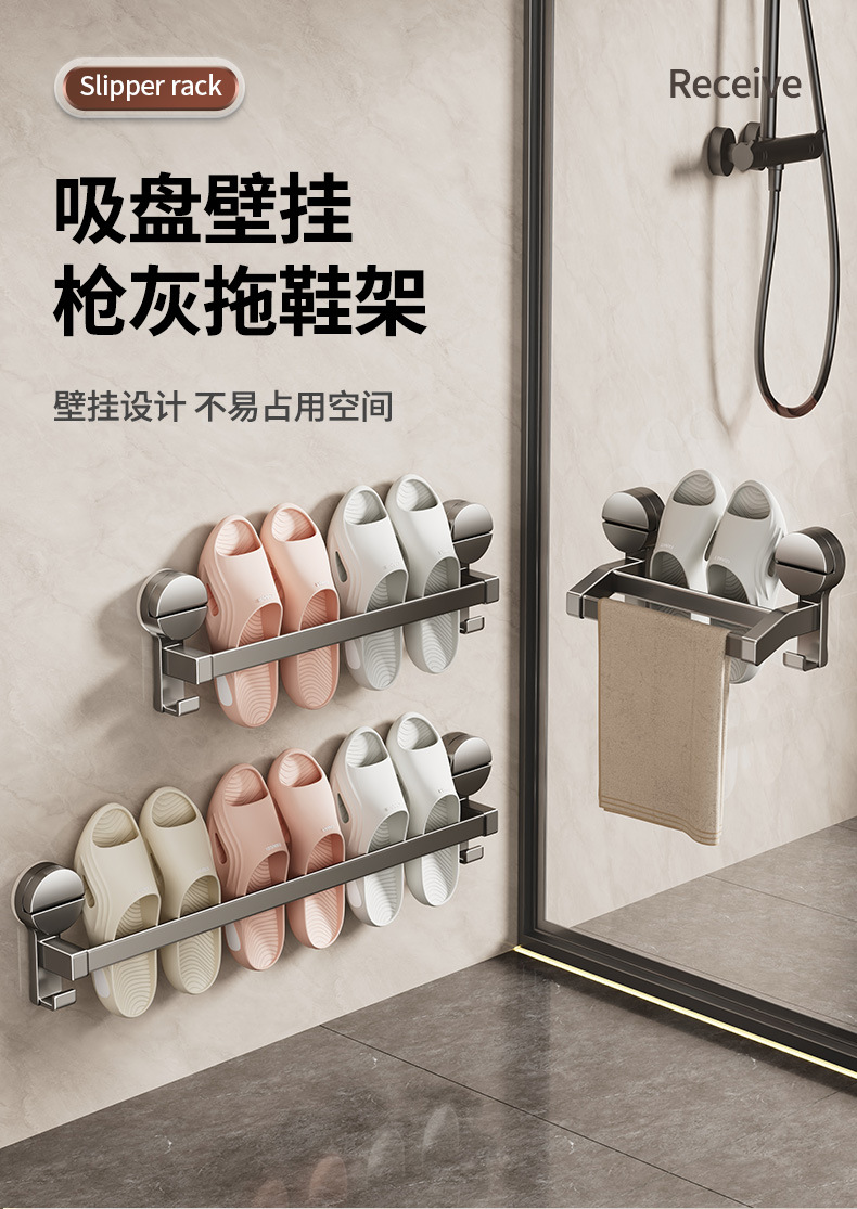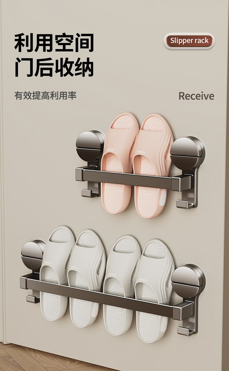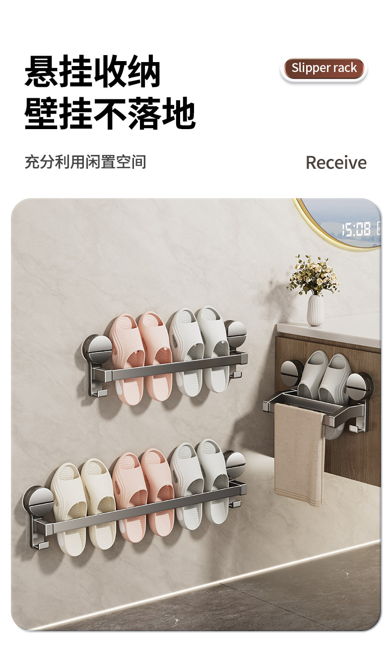 욕실 슬리퍼 랙 흡입 컵 화장실 보관 랙 구멍없는 배수 수건 걸이 벽걸이 장착 스토리지 랙