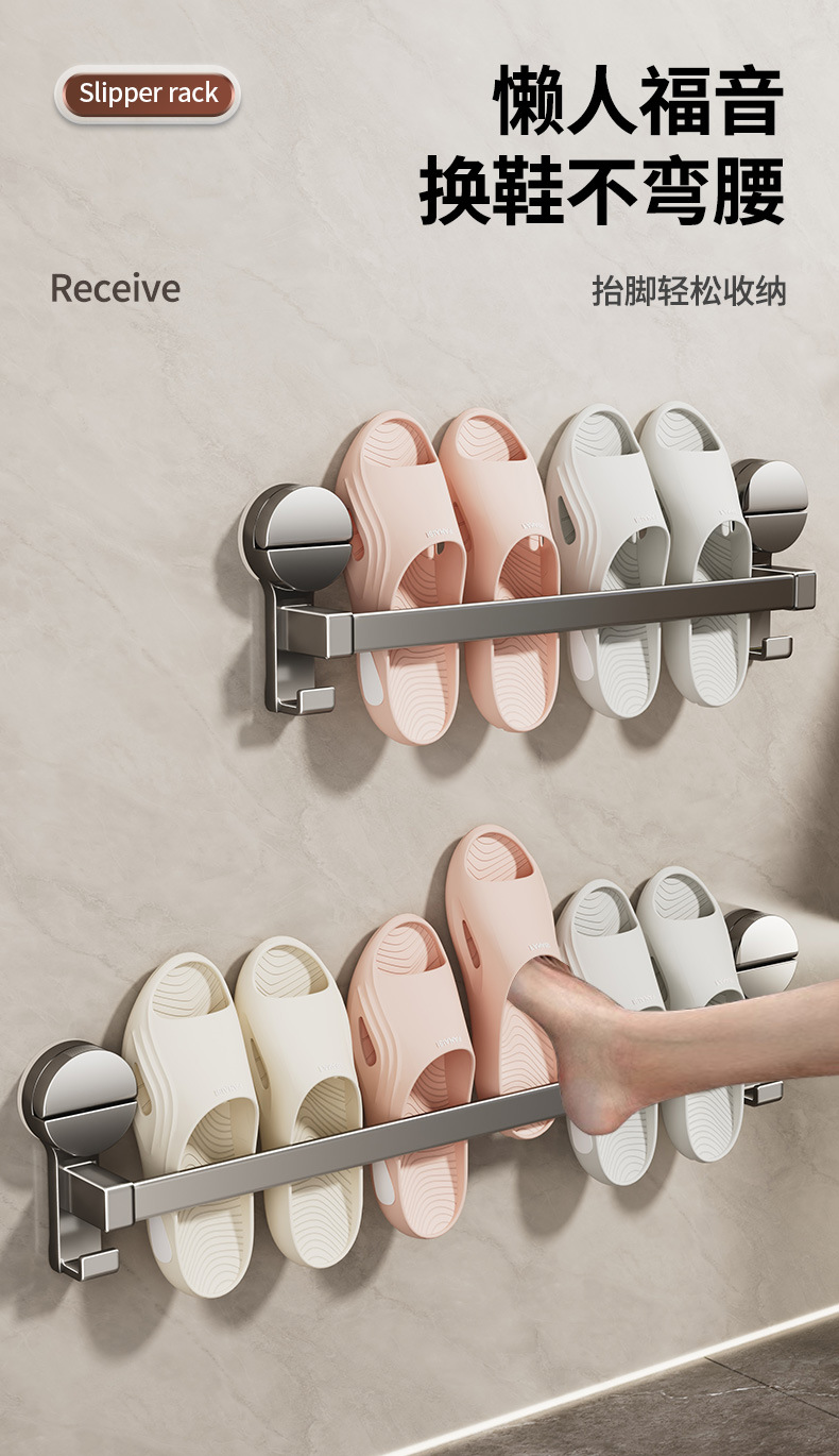 욕실 슬리퍼 랙 흡입 컵 화장실 보관 랙 구멍없는 배수 수건 걸이 벽걸이 장착 스토리지 랙스토어 가기