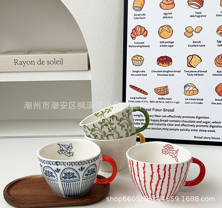 일본 스타일 빈티지 머그컵 홈 오피스 워터 컵 세라믹 커플 컵 커피 밀크 컵 아침 식사 컵 도매