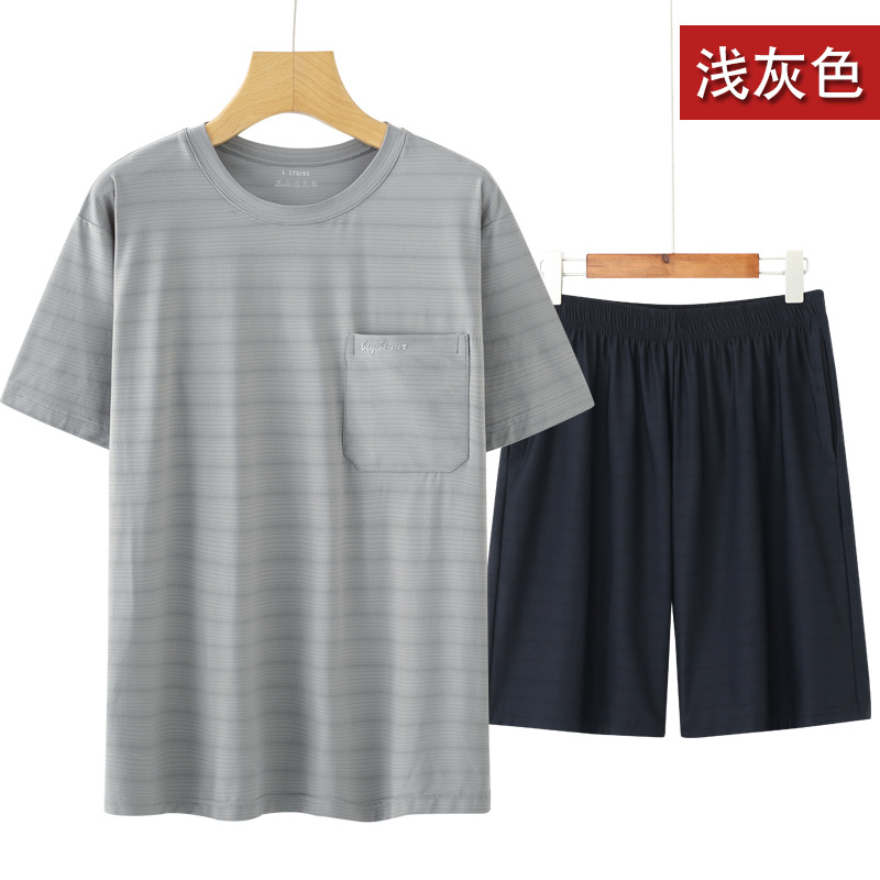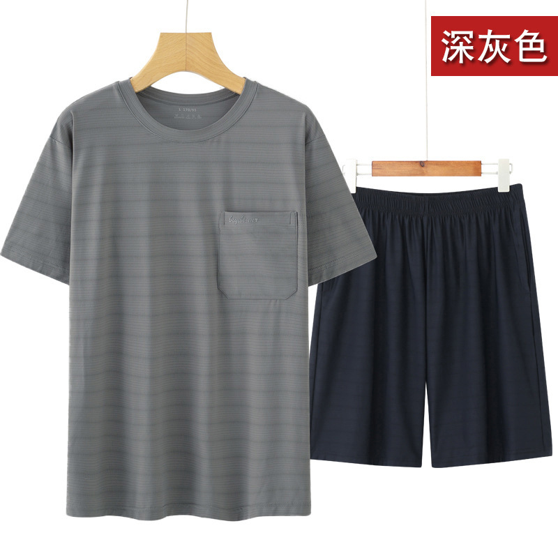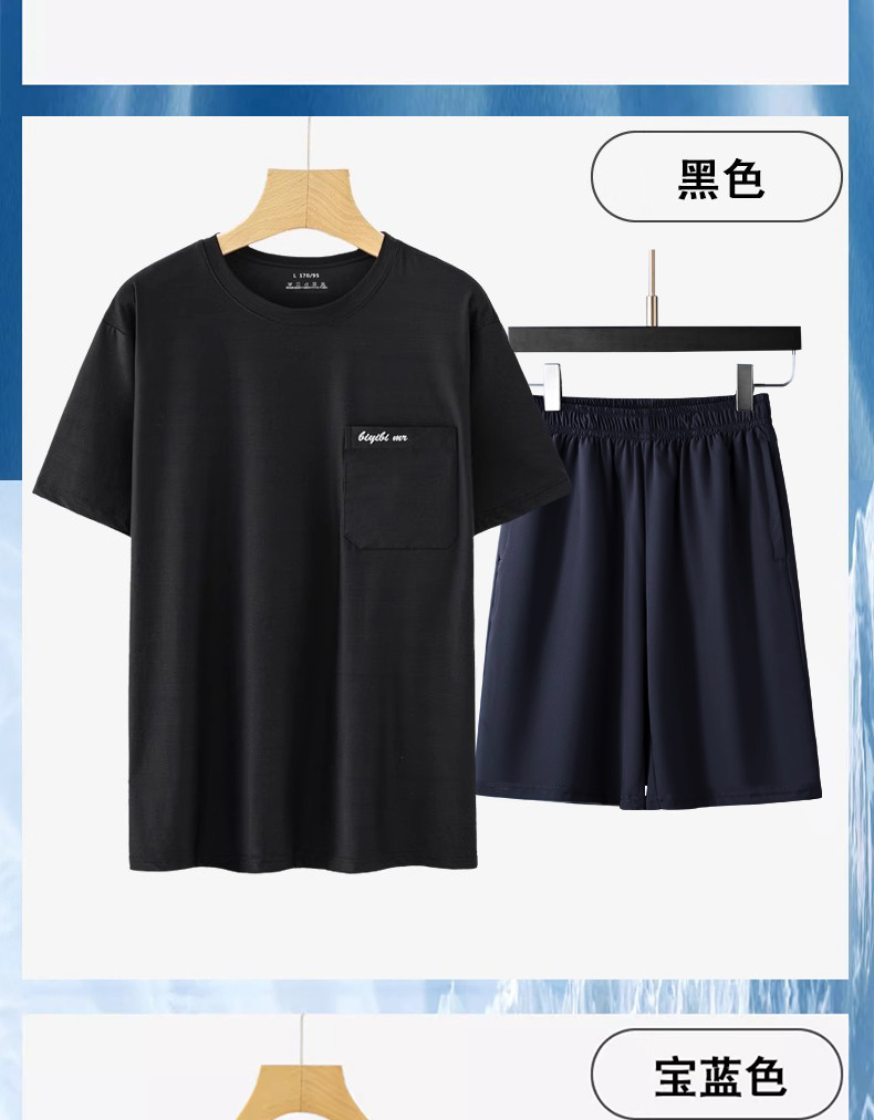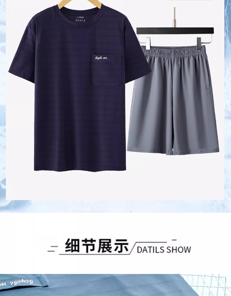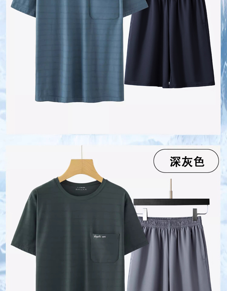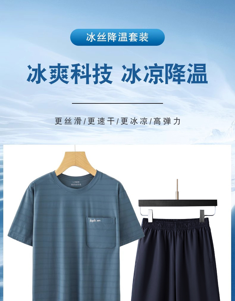 아빠 여름 운동복 남성용 아이스 실크 속건성 통기성 메쉬 중년 및 노인 캐주얼웨어 투피스 반팔 반바지스토어 가기