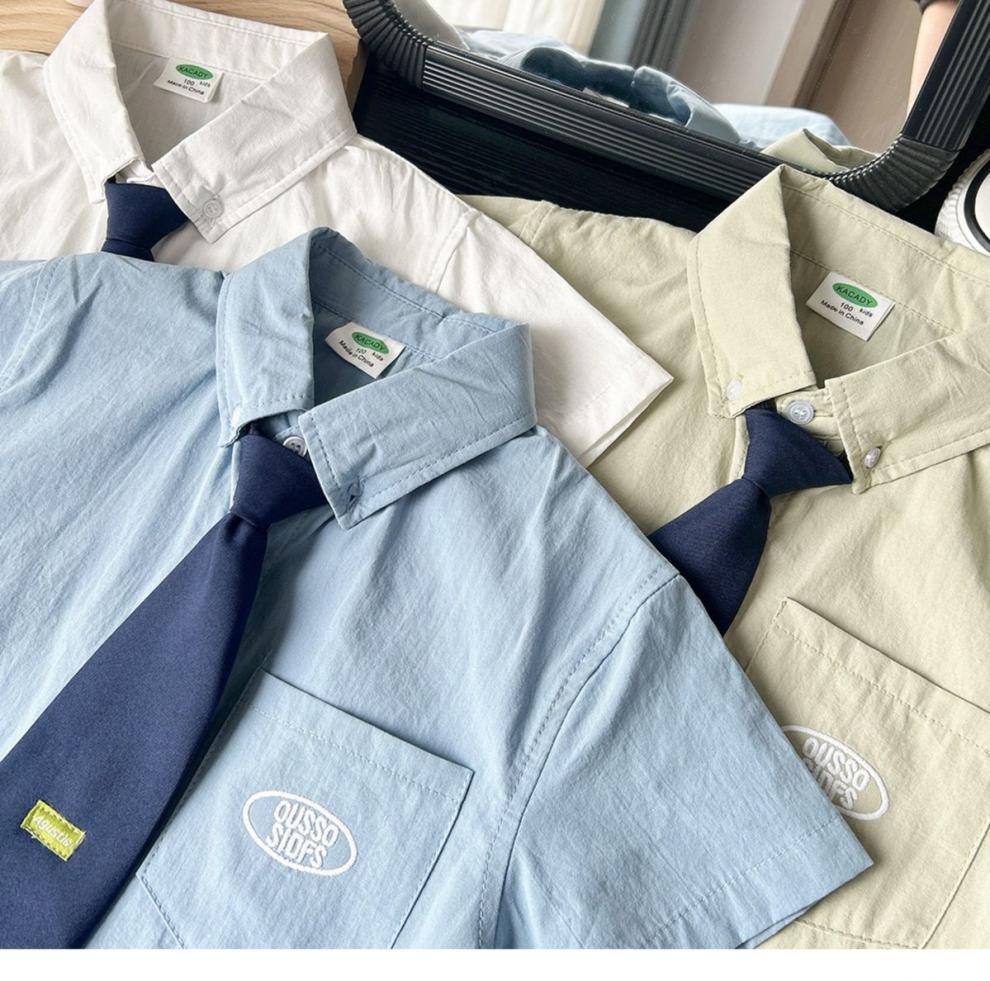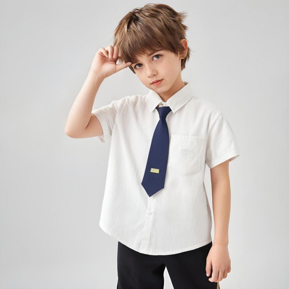 남학생 칼리지 스타일 셔츠 2025 여름 새 어린이 한국식 반팔 얇은 서양식 캐주얼 올매치 화이트 셔츠스토어 가기