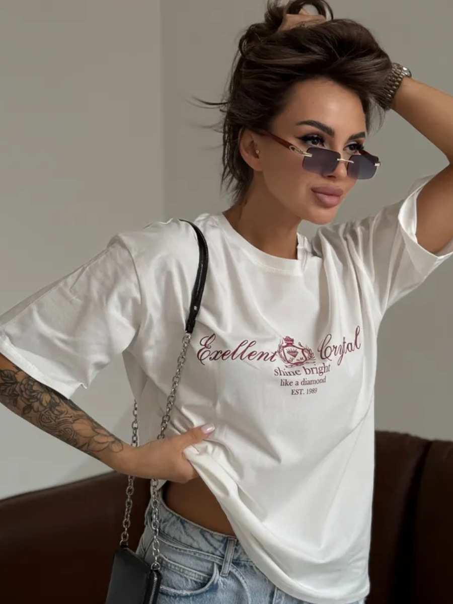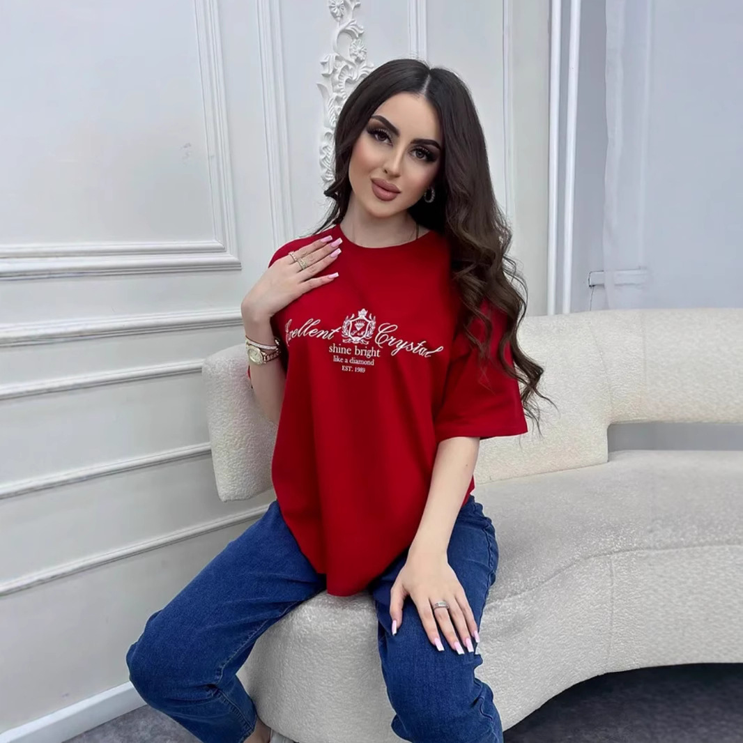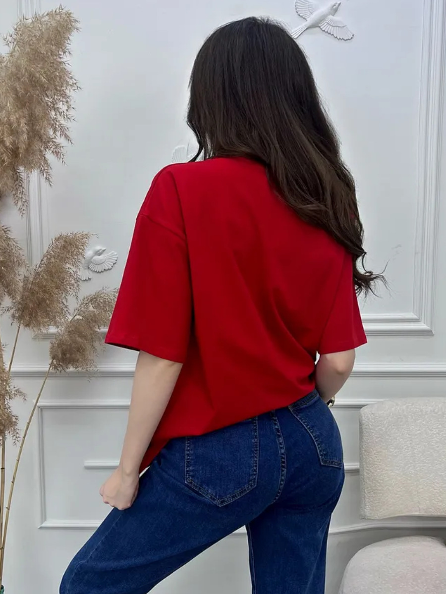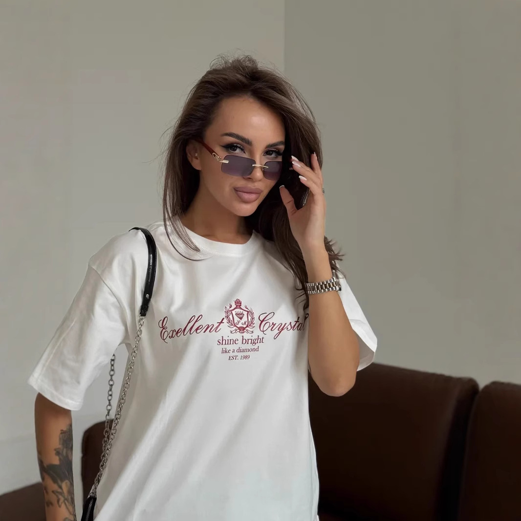 스트리트 레트로 레이지 스타일 루즈하고 다재다능한 아메리칸 캐주얼 스타일 100% 코튼 틈새 기질 여성용 반팔 티셔츠