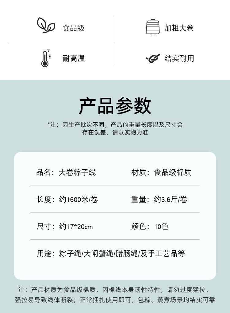 공장 공급 식품 공장 패키지 zongzi 특수 라인 zongzi 라인 zongzi 로프 DIY 코튼 태그 대형 롤 더블 컬러 코튼 라인스토어 가기
