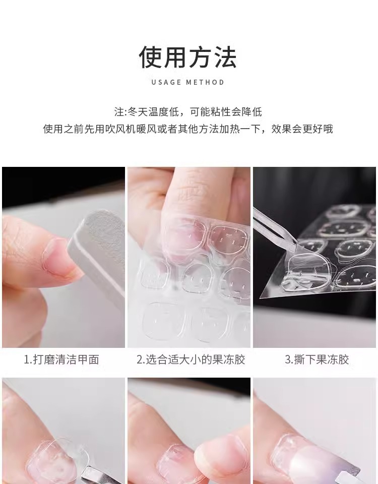 특수 슈퍼 스티키 젤리 젤 네일 스티커 투명 양면 스티커 가짜 네일 스티커 이동식 방수 착용 네일 스티커