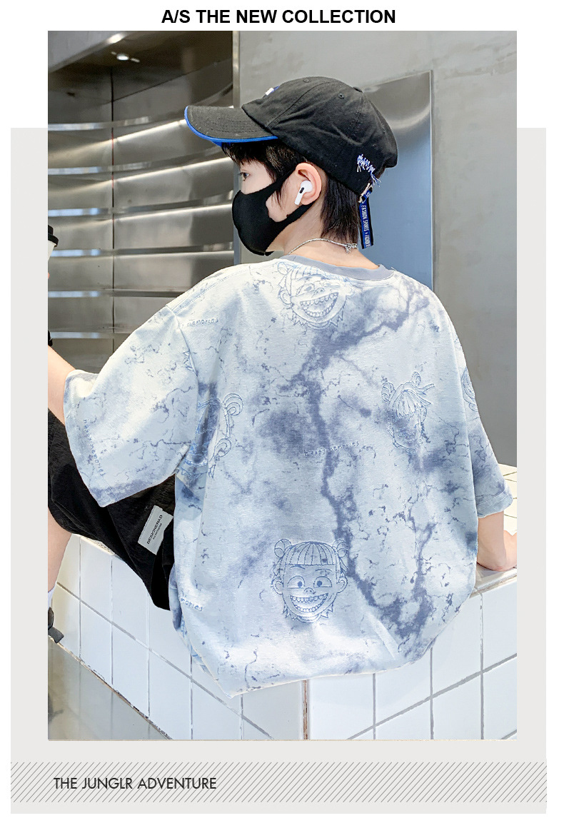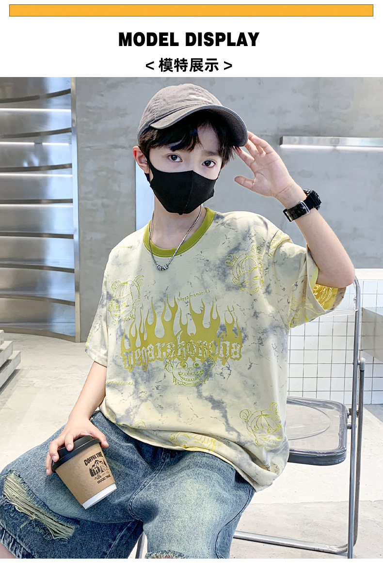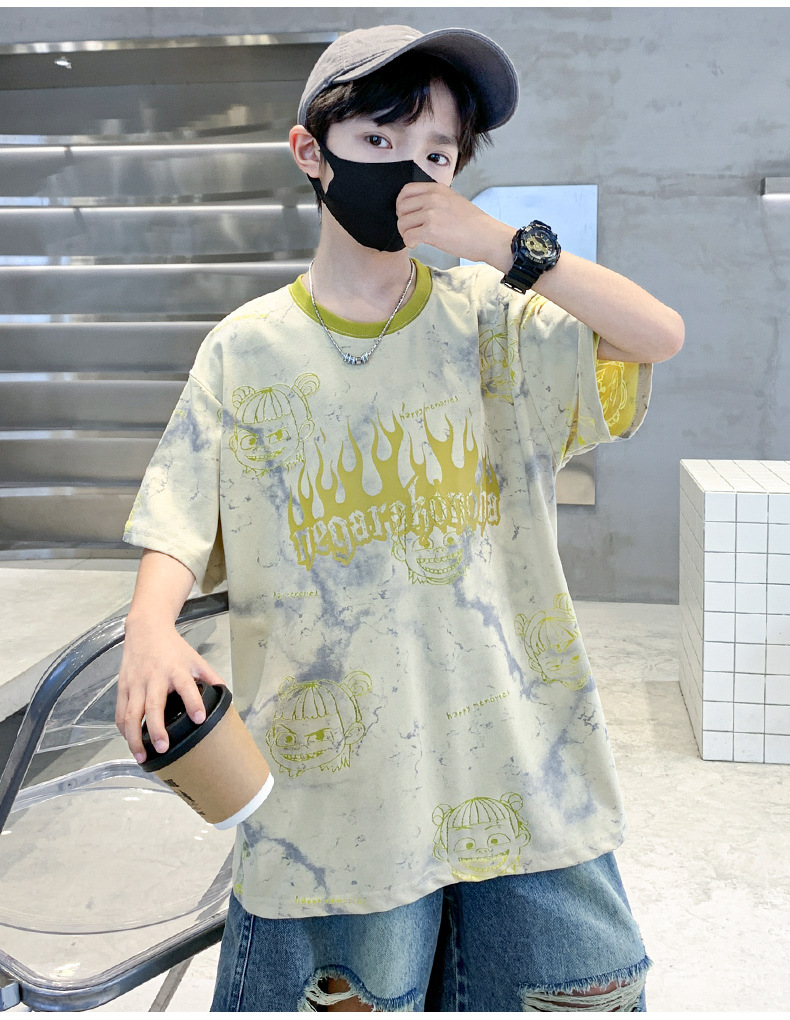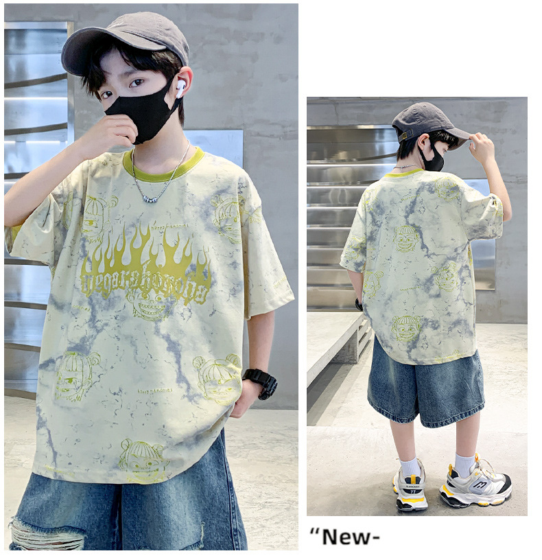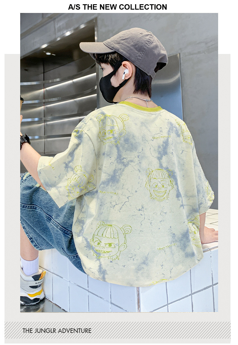 아동복 넥타이-염료 반소매 2025 신식 중대형 어린이 서양식 티셔츠 여름 어린이 느슨한 디자인 베이스 셔츠 8