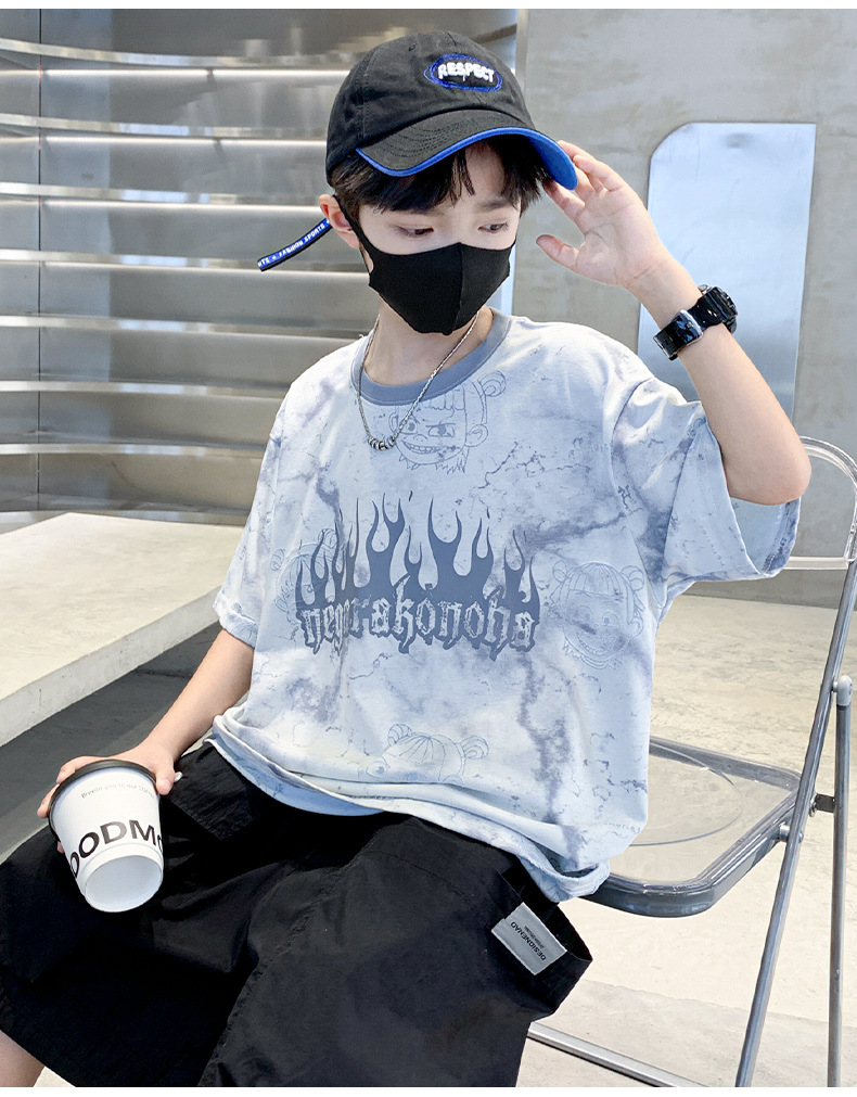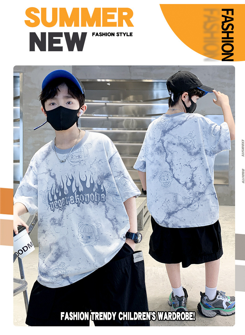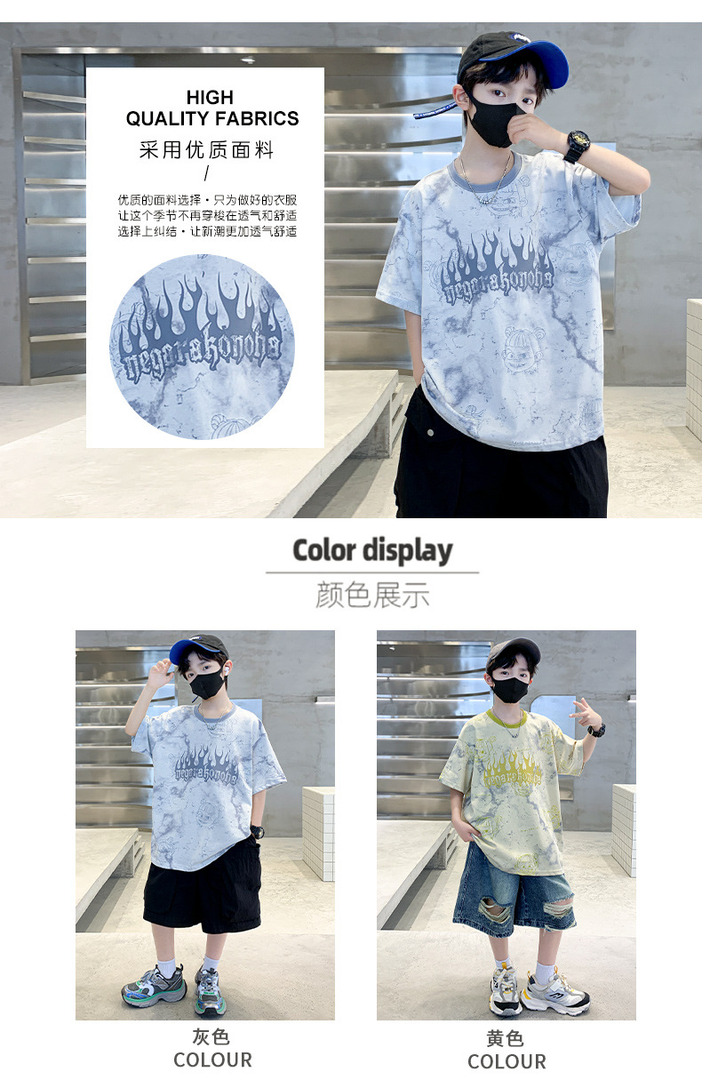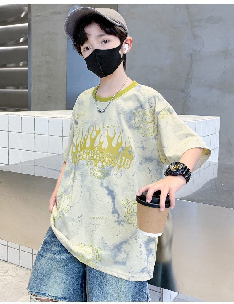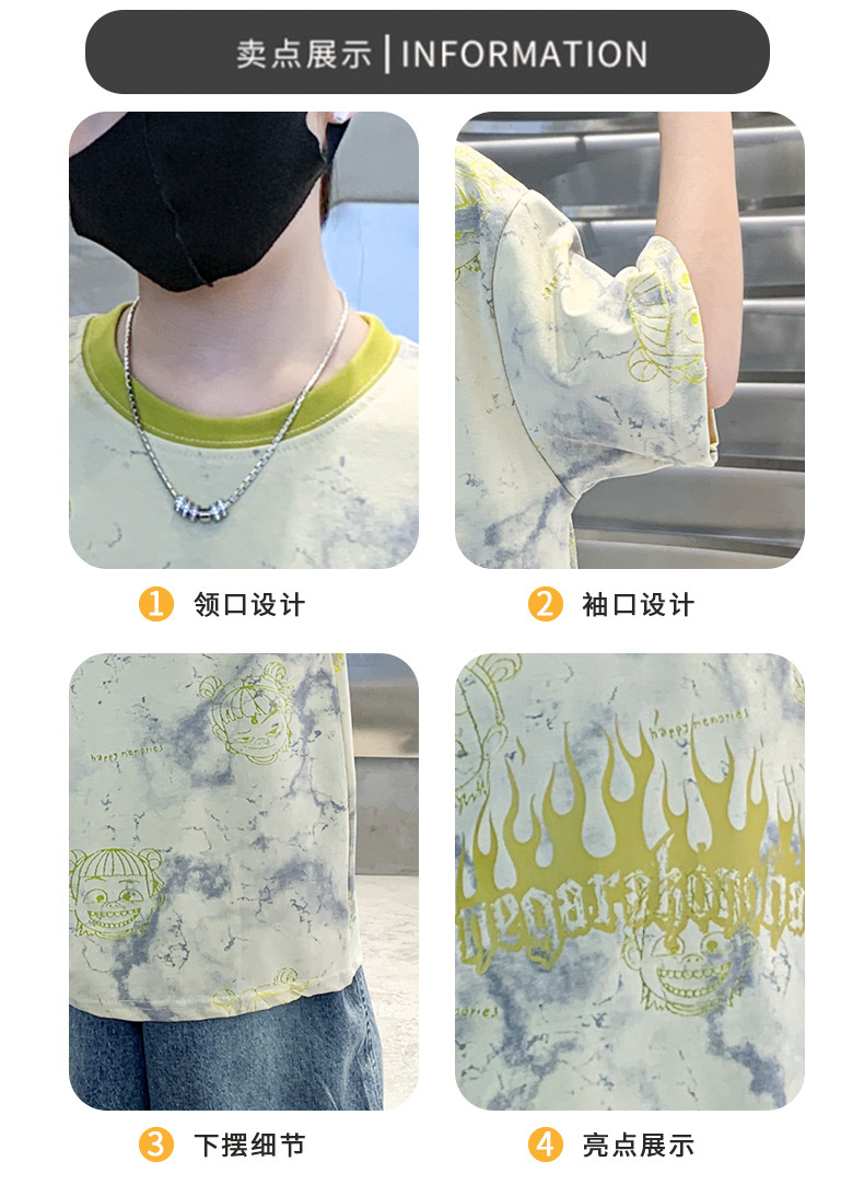 아동복 넥타이-염료 반소매 2025 신식 중대형 어린이 서양식 티셔츠 여름 어린이 느슨한 디자인 베이스 셔츠 8