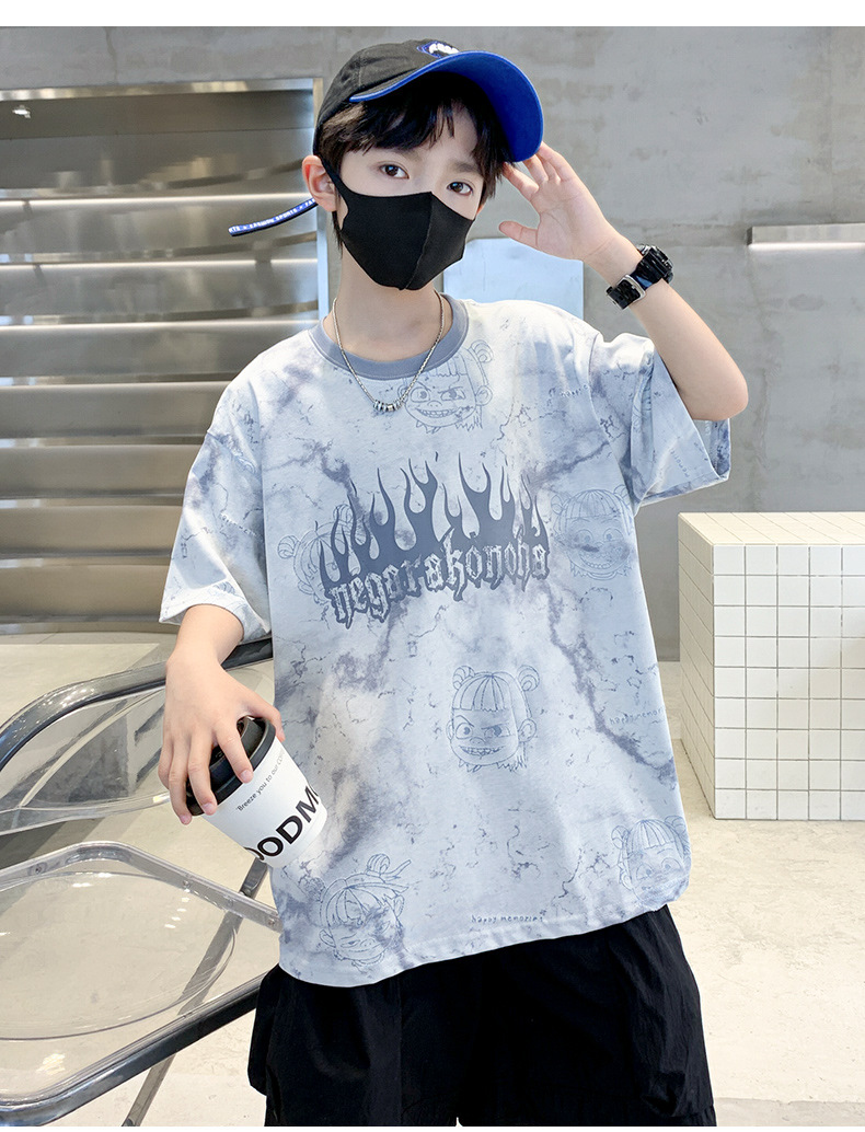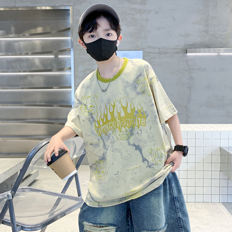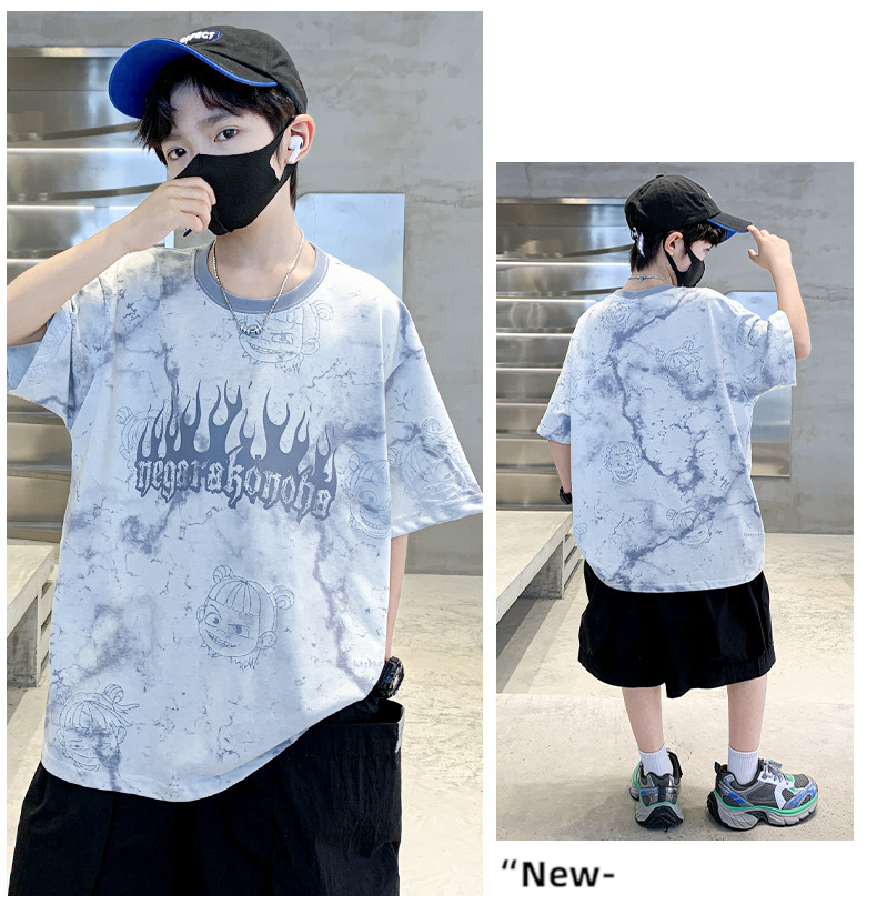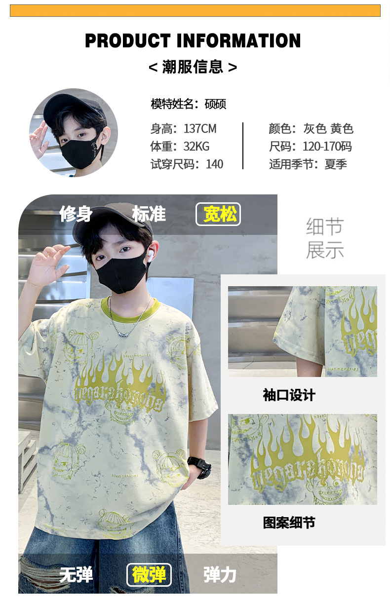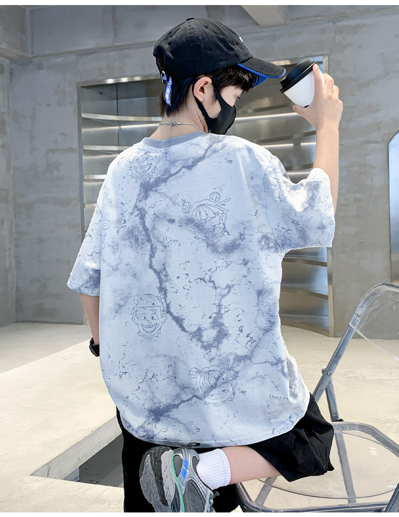 아동복 넥타이-염료 반소매 2025 신식 중대형 어린이 서양식 티셔츠 여름 어린이 느슨한 디자인 베이스 셔츠 8
