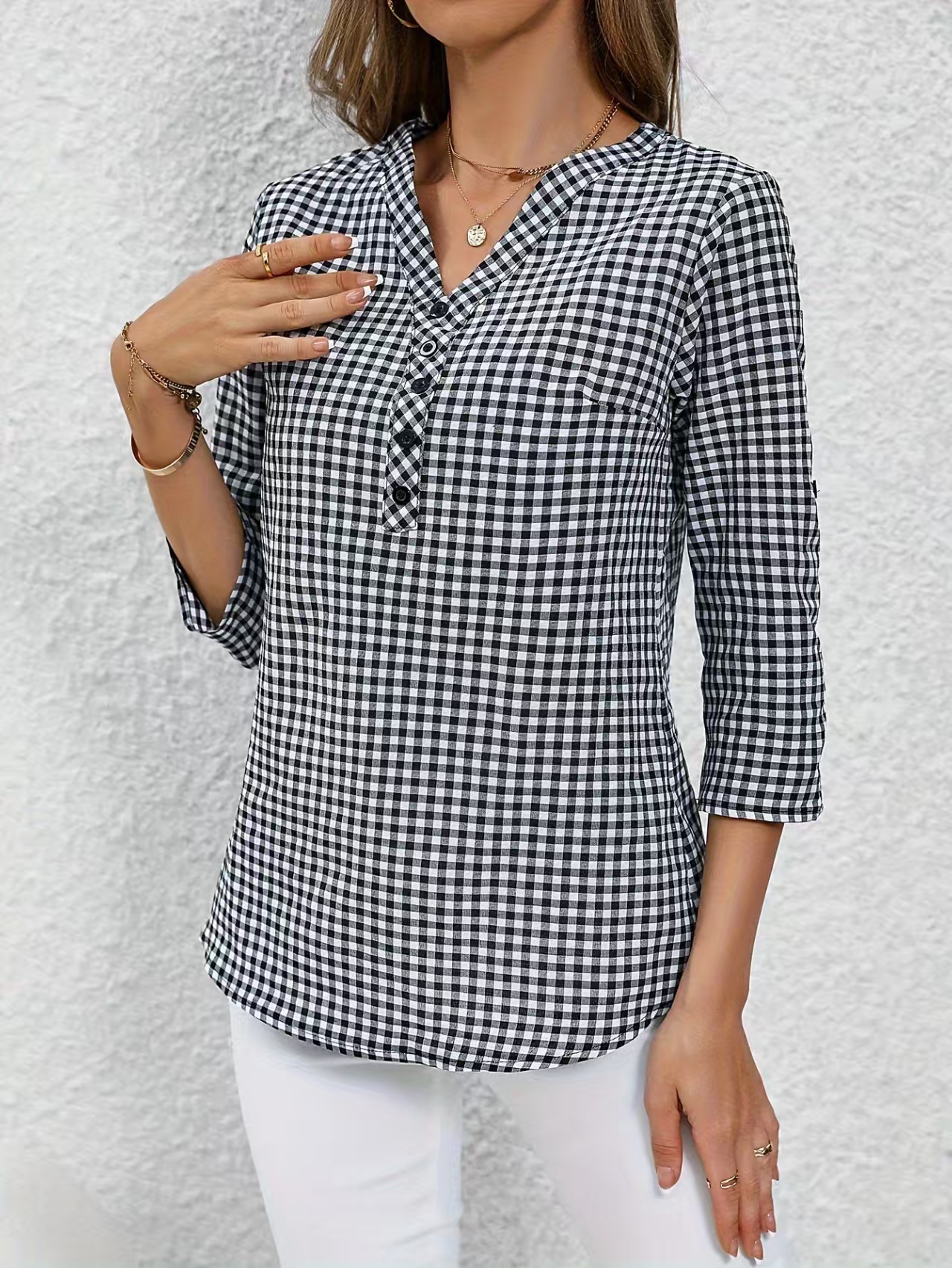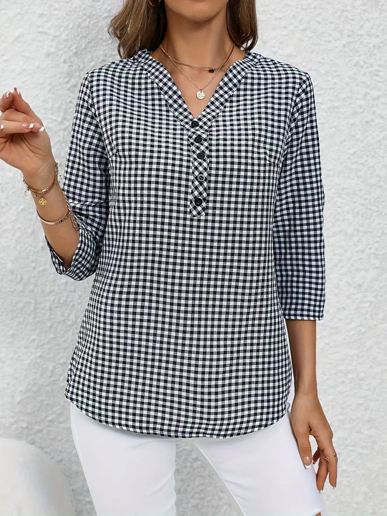 2024 유럽과 미국의 국경 간 아마존 대외 무역 AliExpress 여성 복고풍 우아한 격자 무늬 셔츠스토어 가기
