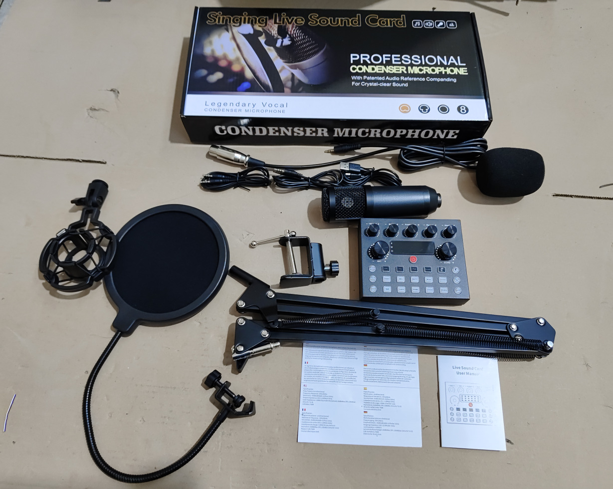 • 검정색과 금색 BM800+V8S 사운드 카드+소형 삼각대 스탠드