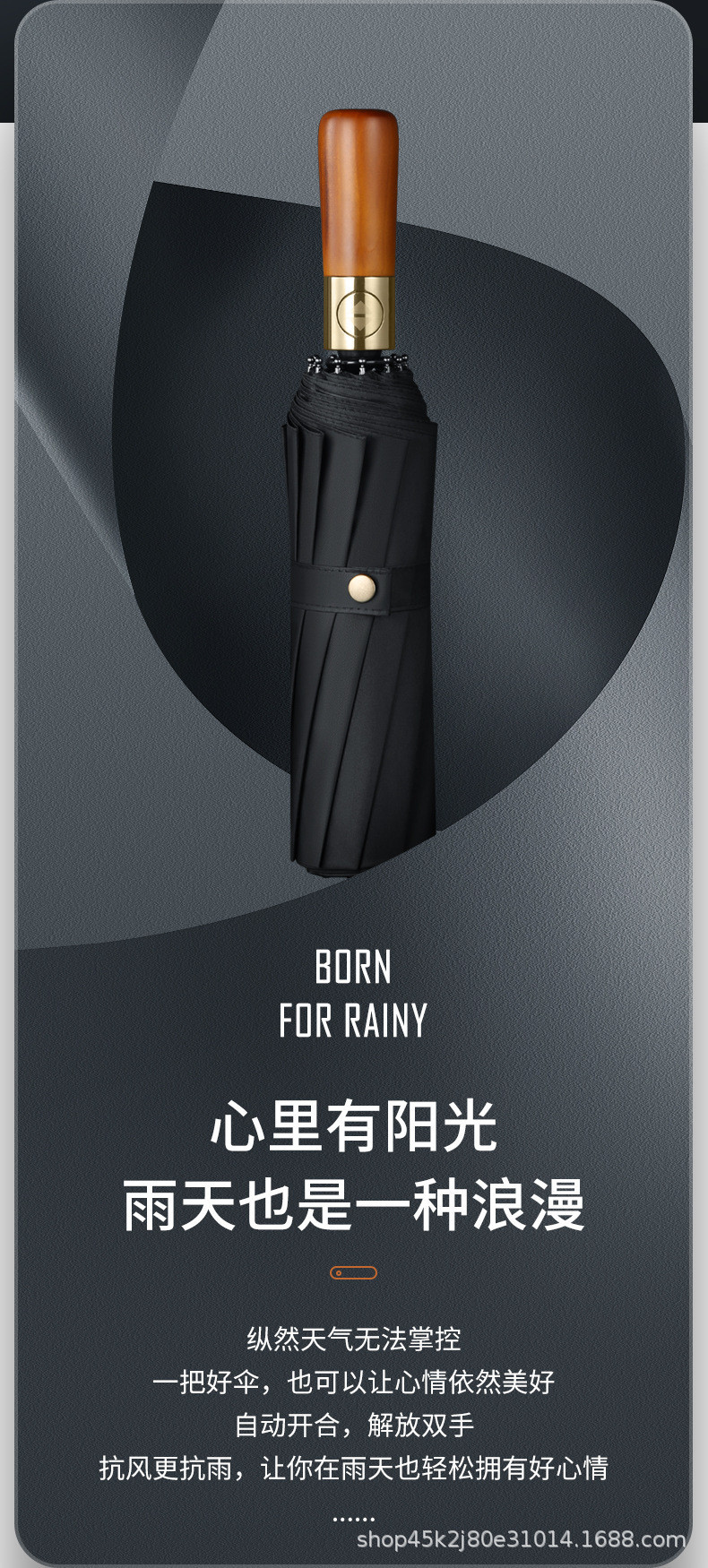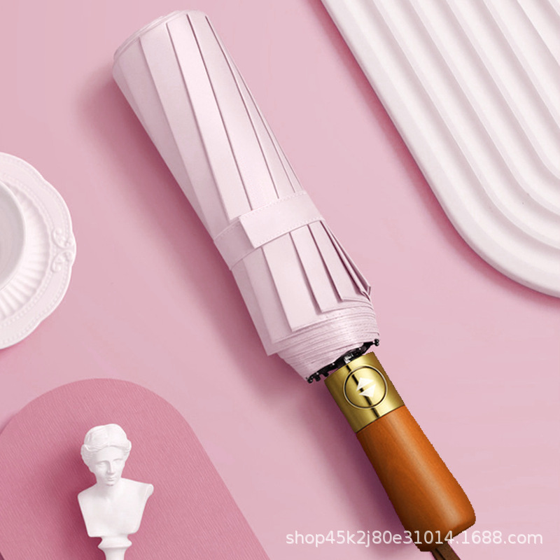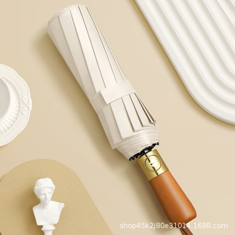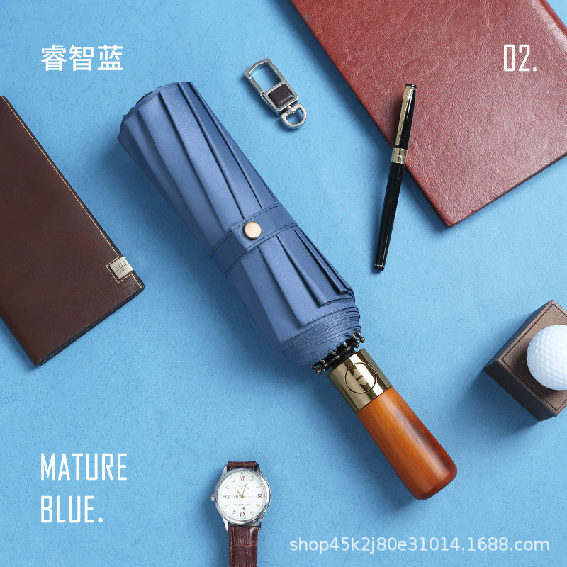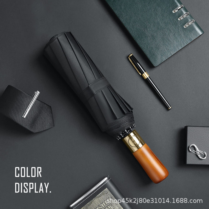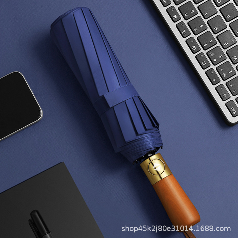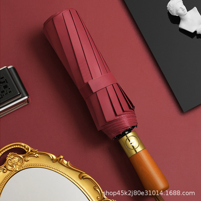 새로운 단단한 나무 손잡이 자동 우산 12 뼈 강화 방풍 우산 비즈니스 완전 자동 접는 우산 남성용 비 또는 빛 우산스토어 가기