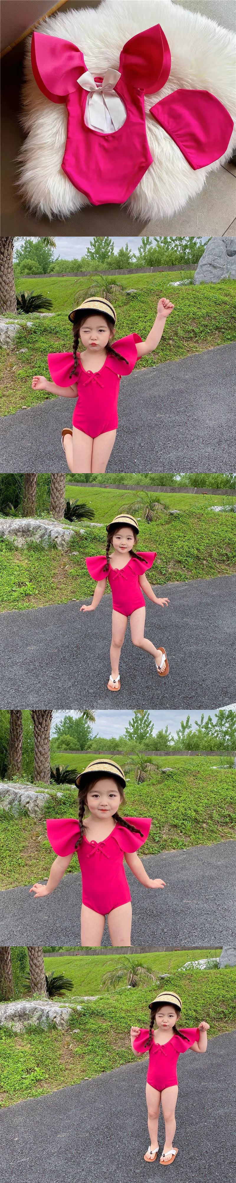 어린이 수영복 소녀 여름 아기 연꽃 잎 새로운 유행 소녀 수영 휴가 귀여운 아기 원피스 수영복