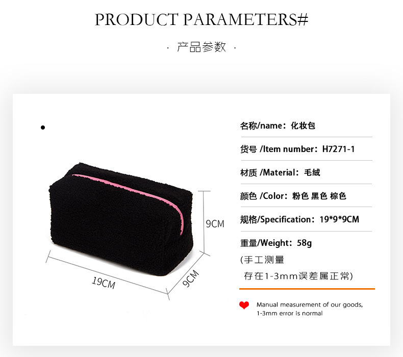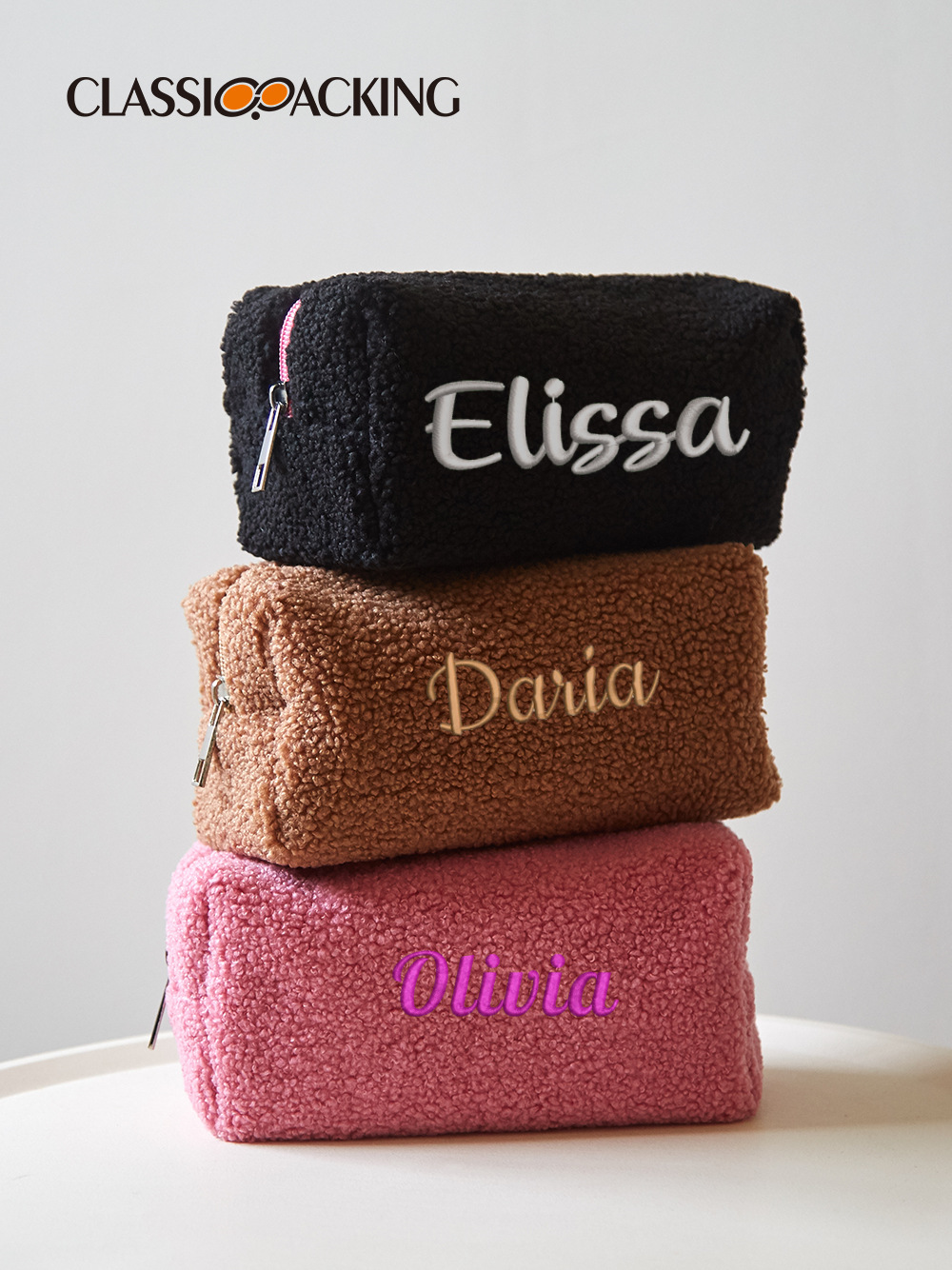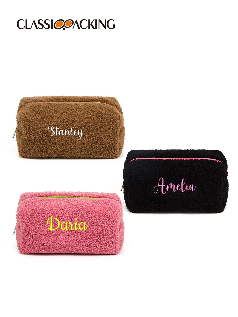 자수 세면 용품 보관 가방, 여행용 휴대용 정리 가방, 대용량 지퍼 사각형 플러시 화장품 가방 도매스토어 가기
